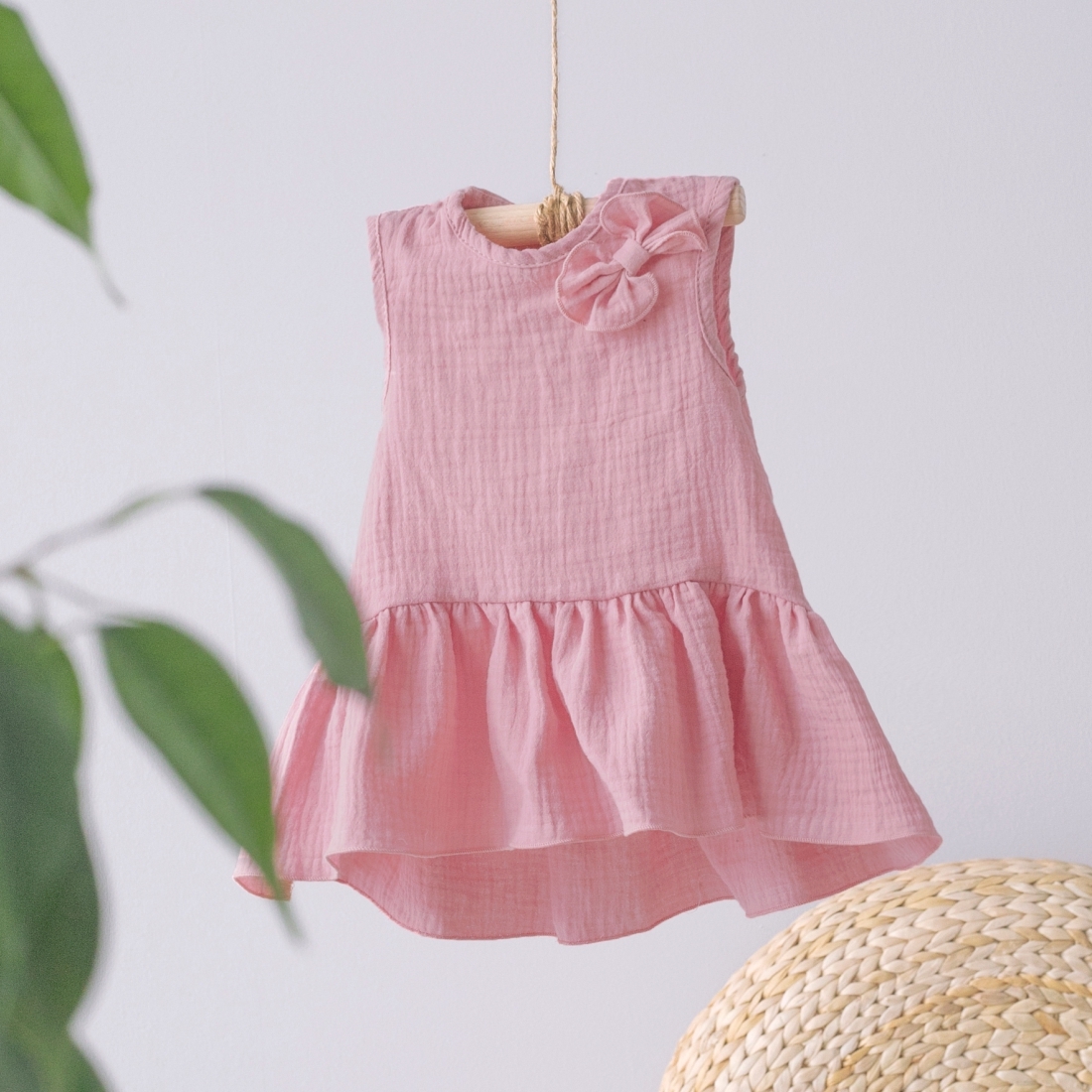 Сорочка летняя для девочки, с воланом "Муслин", розовая пудра