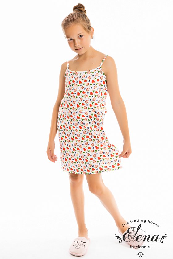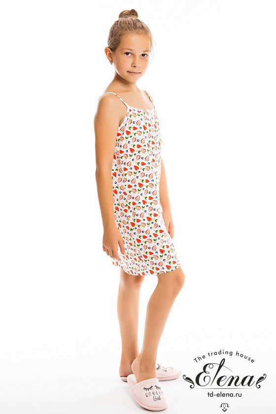 Сорочка на тонких бретелях, выполнена из кулирки, 100% хлопок. Сверху спереди пришит бантик.