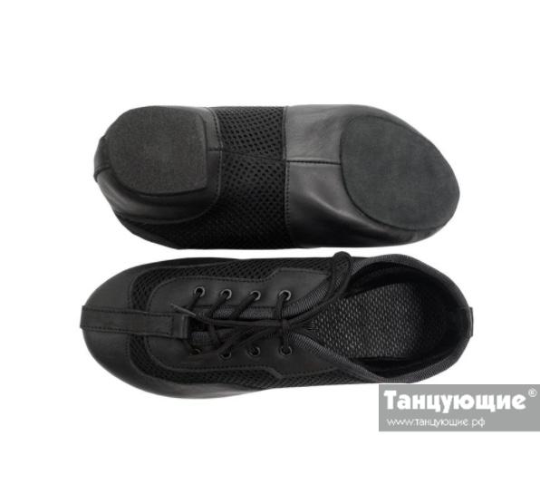 Легкие кожаные джазовки с вставками из перфорированной ткани. Раздельная подошва позволяет элегантно двигаться и отрабатывать различные движения во время танца.