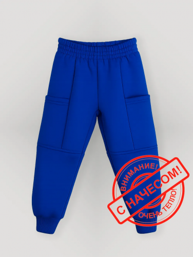 Модель оснащена объёмными накладными карманами по бокам — это не только удобно, но и придаёт брюкам стильный акцент в стиле «карго». Широкий эластичный пояс обеспечивает комфортную посадку, а манжеты по низу фиксируют штанину и помогают удерживать тепло.