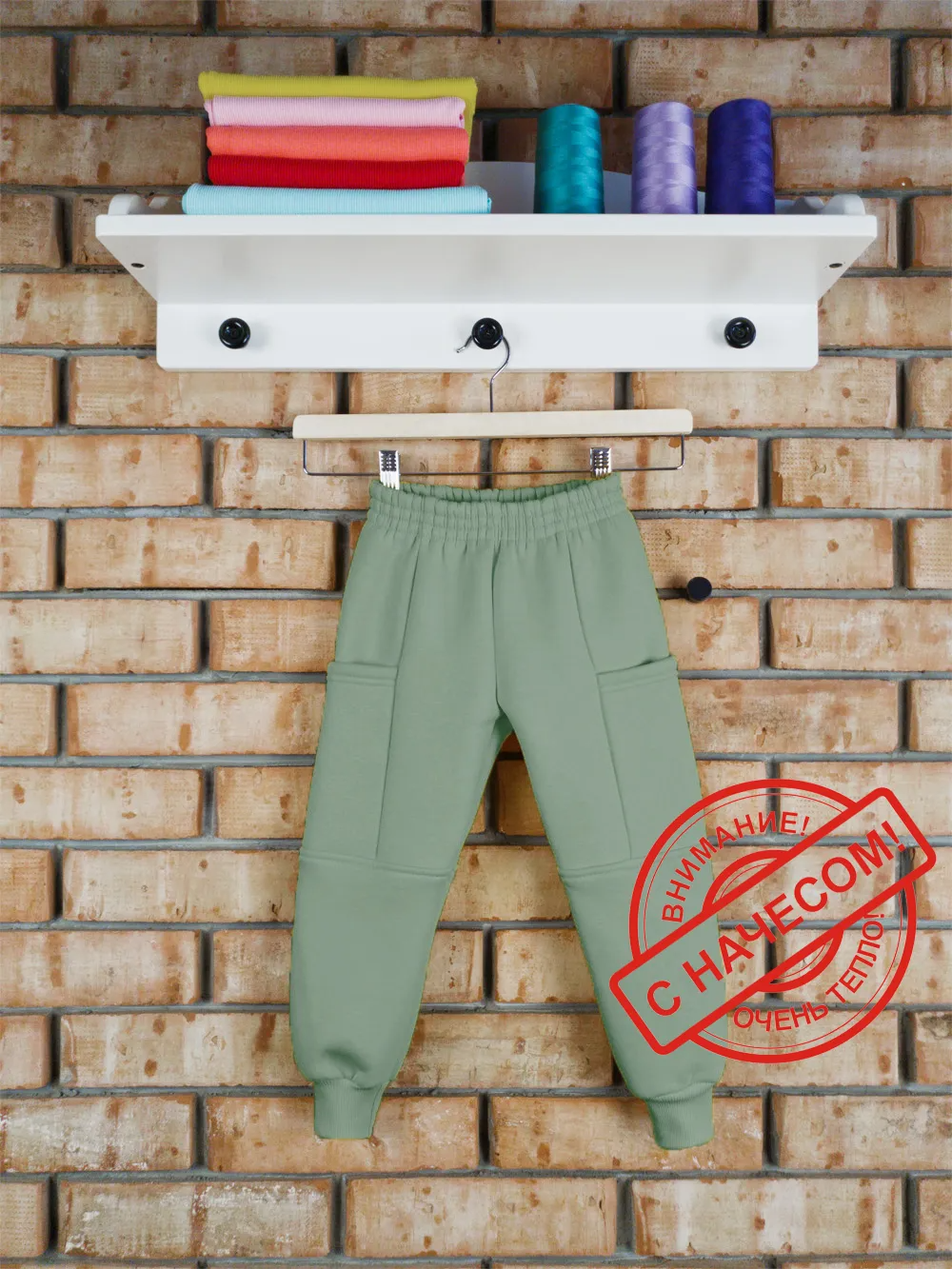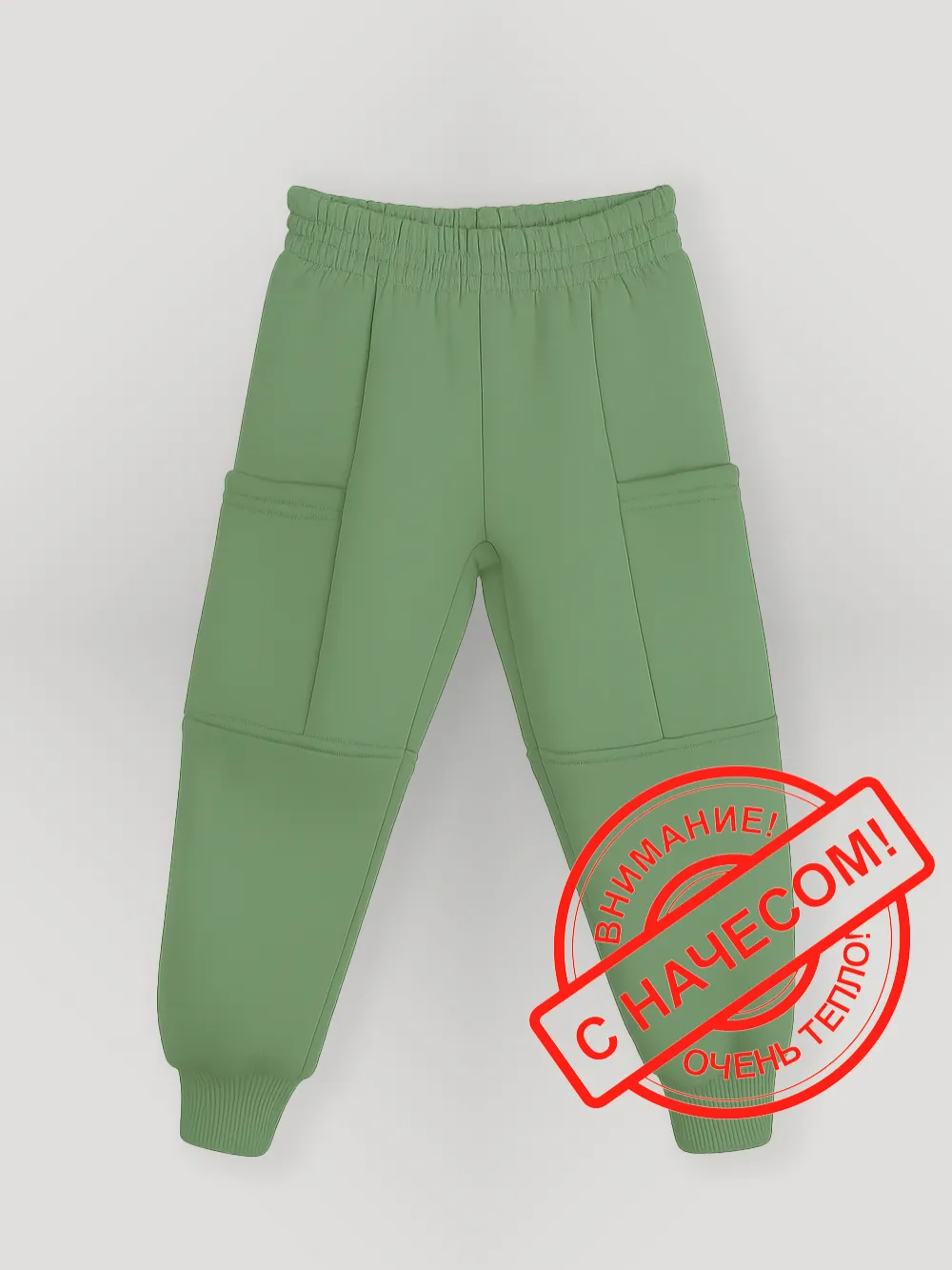 Модель оснащена объёмными накладными карманами по бокам — это не только удобно, но и придаёт брюкам стильный акцент в стиле «карго». Широкий эластичный пояс обеспечивает комфортную посадку, а манжеты по низу фиксируют штанину и помогают удерживать тепло.