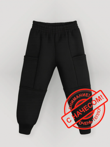 Модель оснащена объёмными накладными карманами по бокам — это не только удобно, но и придаёт брюкам стильный акцент в стиле «карго». Широкий эластичный пояс обеспечивает комфортную посадку, а манжеты по низу фиксируют штанину и помогают удерживать тепло.