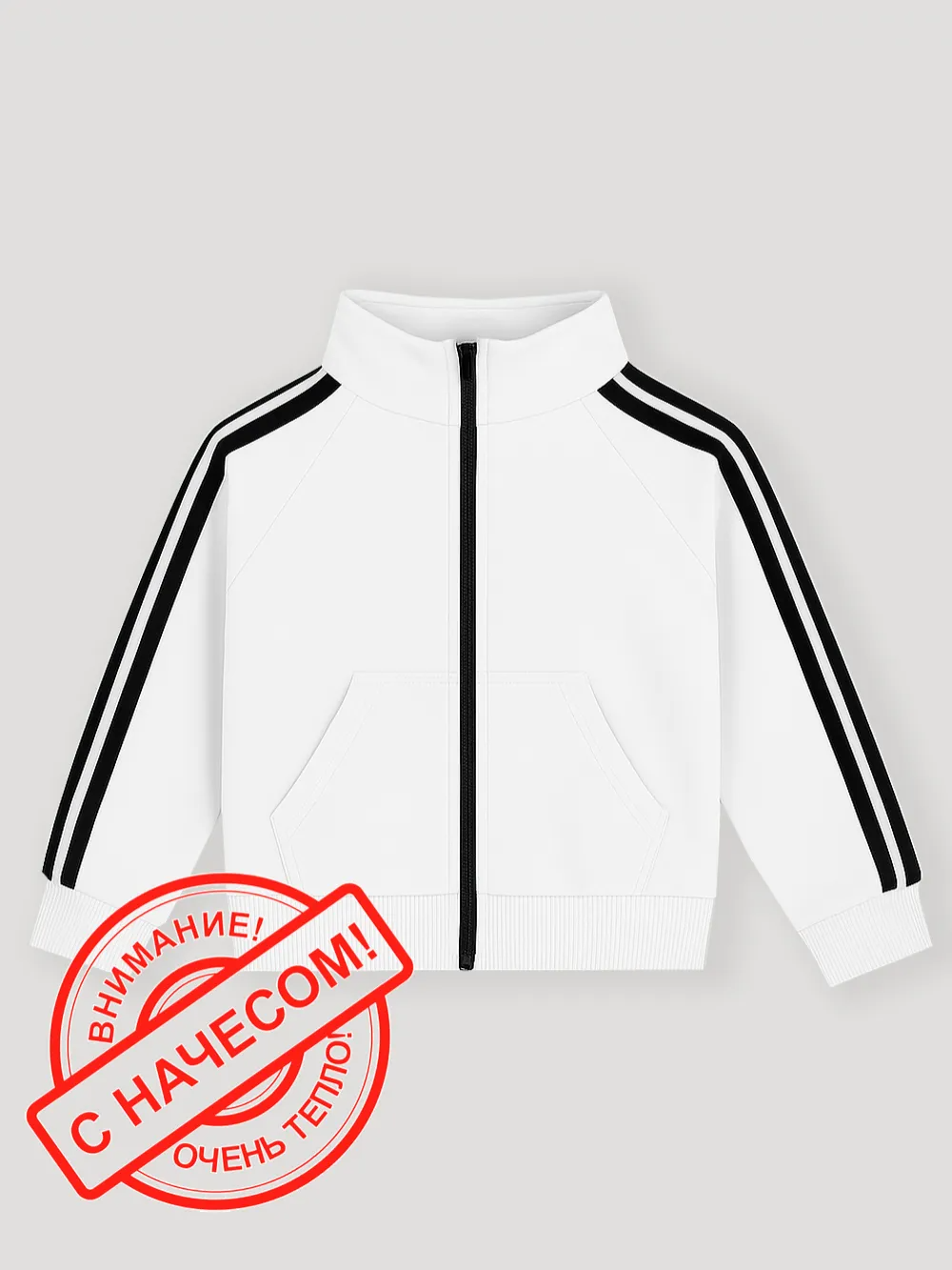 Практичные накладные карманы удобны для рук и мелочей, а контрастные лампасы на рукавах добавляют спортивного характера и делают толстовку особенно стильной.