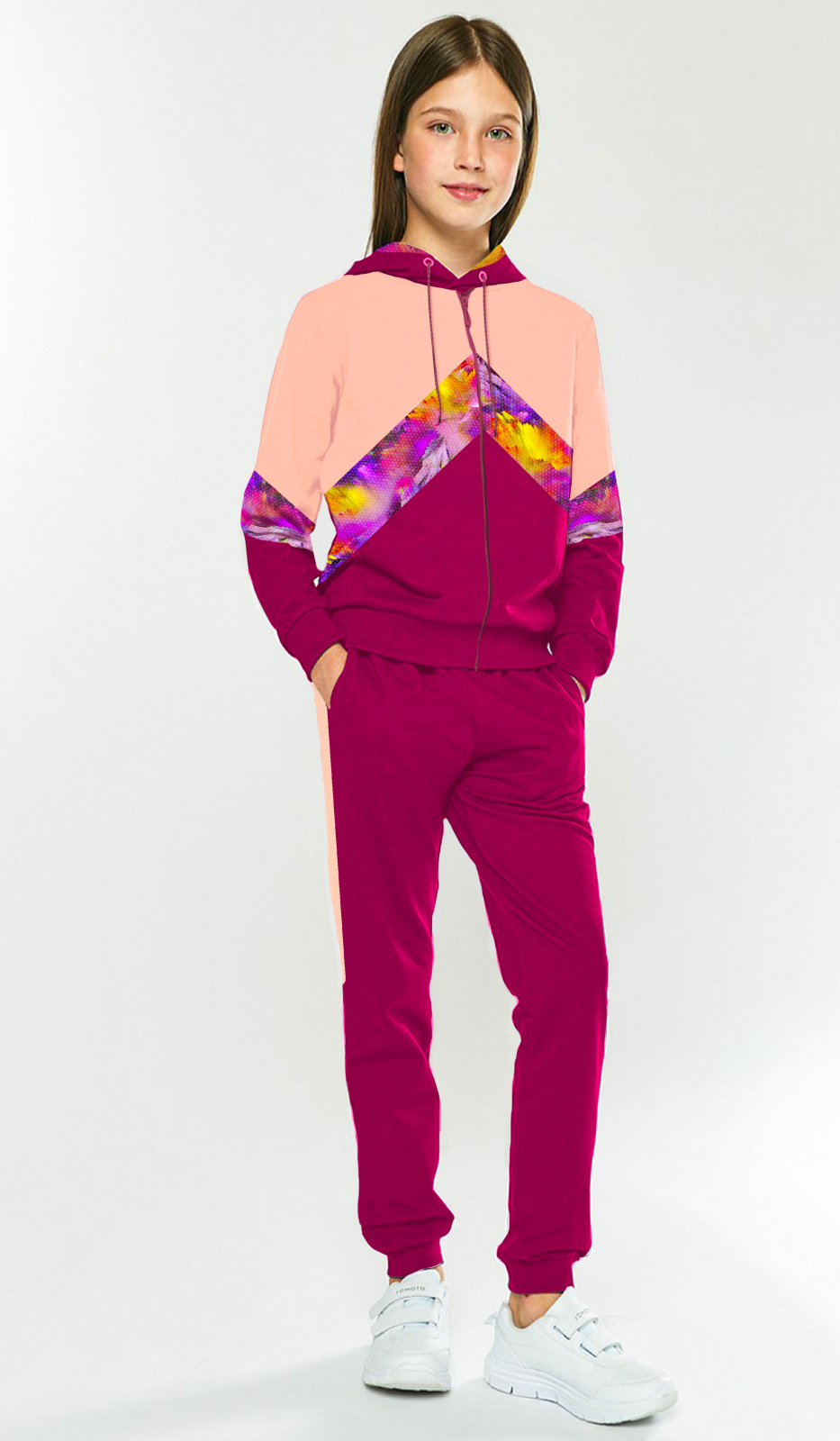 В настоящее время очень востребована спортивная и домашняя одежда для детей и подростков из футера трехнитка петля fiam.На полочке,рукавах и внутреннем капюшоне отделочная ткань-диджитал.