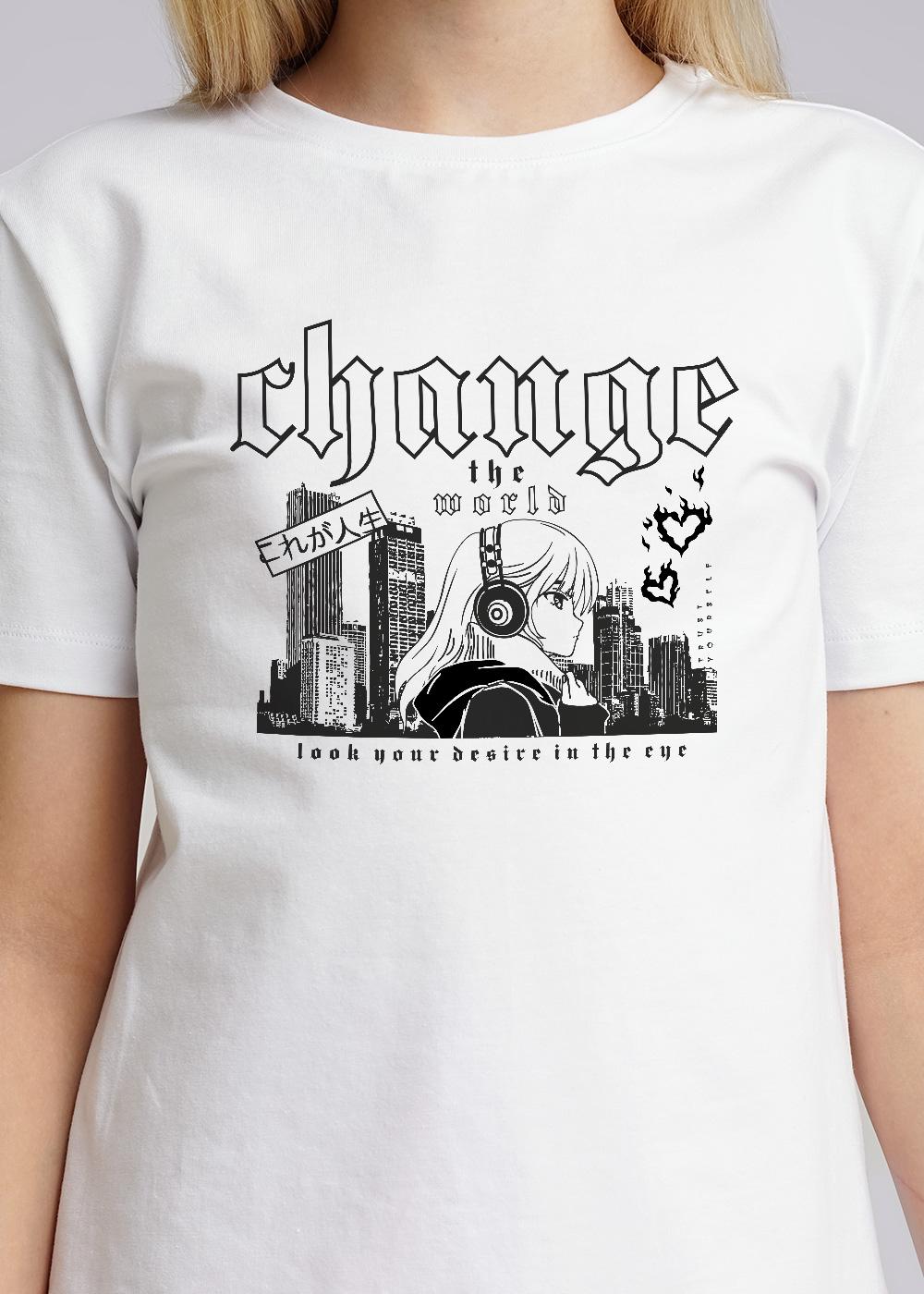 Стильная футболка умеренного объема с принтом-это отличный вариант для повседневных образов! Такая модель будет легко сочетаться с любым низом: кожаными брюками или юбкой. Выполнена из эластичного хлопка.