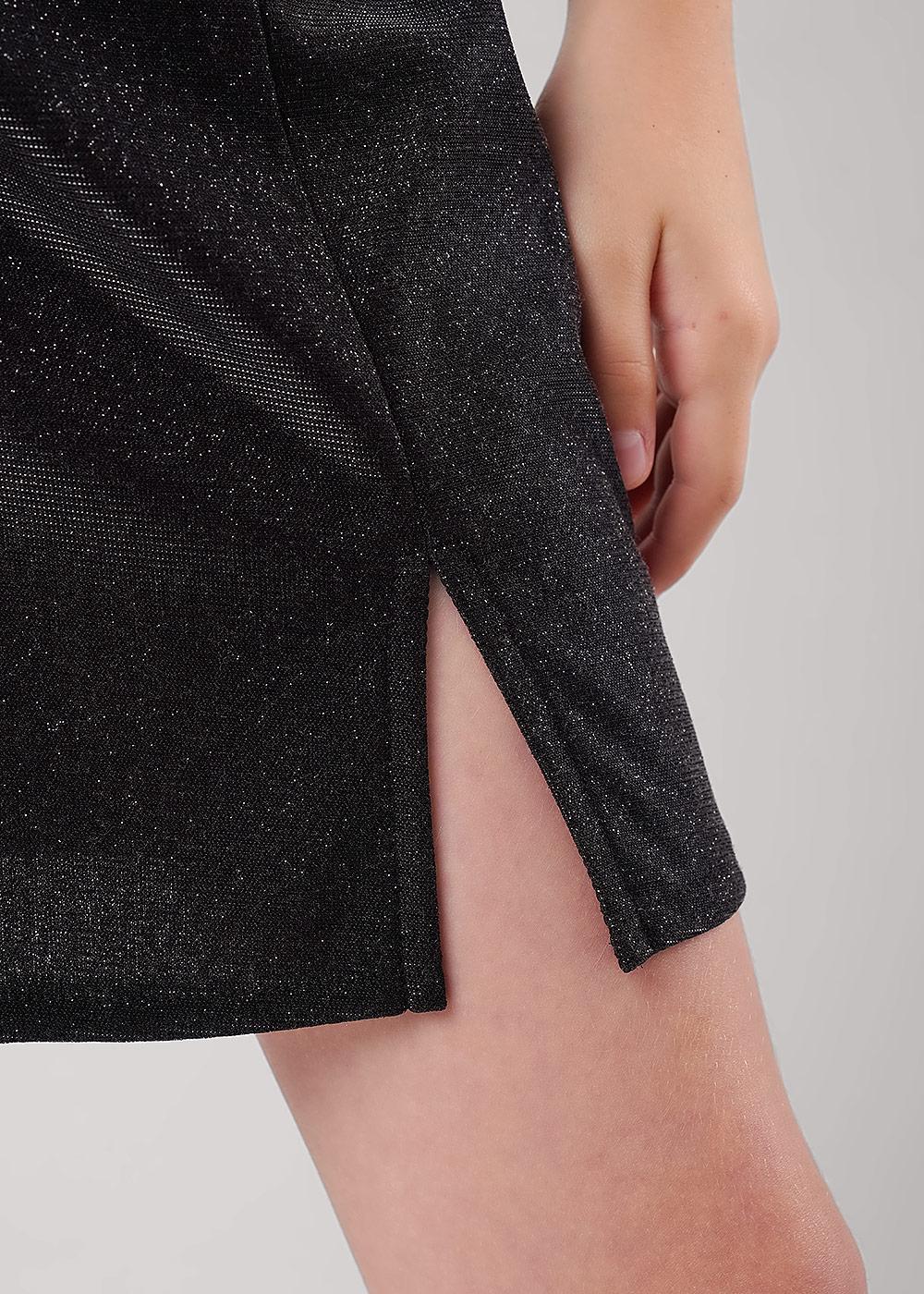 Отличное решение для смелых девочек! Стильная юбка с разрезом из сияющей ткани. Эластичный пояс, обеспечивает хорошую посадку. Отлично сочетается с любой футболкой или блузкой.