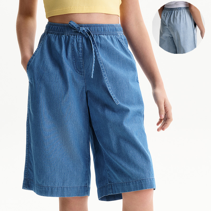 Состав: 100%хлопокОписание: Шорты детские из тонкой джинсы для девочки. Широкие шорты длиной до колена подарят ребёнку комфорт и свободу движения. Модель без застёжки — быстро и удобно надевать и снимать. В поясе мягкая и широкая резинка — не давит и не перекручивается. Шнурок из основной ткани позволяет регулировать объём и посадку изделия. По центру переда имитация гульфика. По бокам удобные наклонные карманы. Шорты однотонные, без принта. За ними легко ухаживать. В составе ткани преобладает высококачественный хлопок — шорты мягкие и прекрасно пропускают воздух — кожа ребёнка дышит. Изделие выполнено в джинсовом синем цвете с актуальным эффектом мягкой варки garment wash. Подходят для девочек дошкольного и младшего школьного возраста, а также девочек-подростков. Шорты можно носить на прогулках и дома. Они прекрасно сочетаются с различным верхом. Выбирайте нужный размер по таблице размеров на фото. Цвет товара на экране вашего устройства может отличаться от цвета изделия вживую.