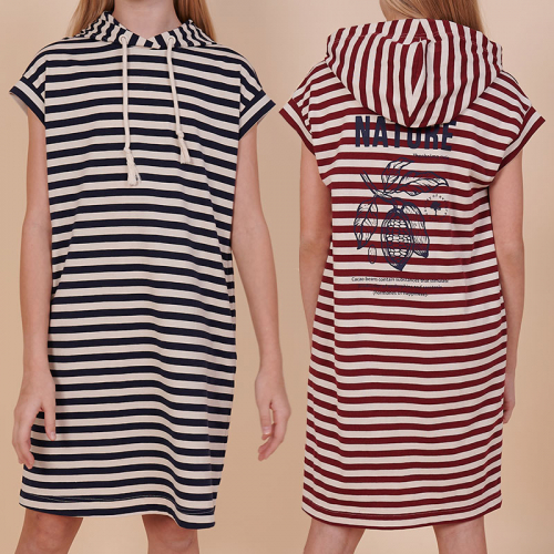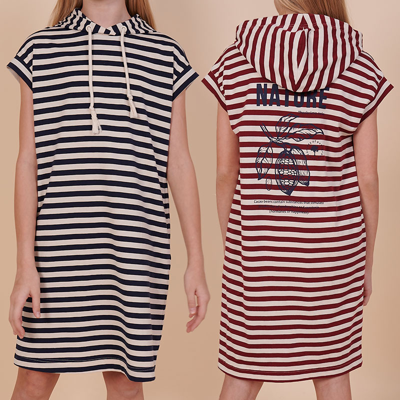 Состав: 100%хлопокОписание: Детское платье худи в полоску для девочки. Платье в спортивном стиле А-силуэта подойдёт для любого типа фигуры. Это идеальный вариант для летнего отдыха — благодаря капюшону нет необходимости в панаме, голову ребёнка не напечёт солнцем. Капюшон двухшовный, красиво и анатомически правильно садится по голове. Есть возможность регулировки капюшона шнуром. Платье-тельняшка — супертренд сезона! Платье умеренного объёма со спущенным плечом подарит ребёнку комфорт и свободу движения. Проймы с широкими притачными манжетами, они отлично держат форму, платье выглядит аккуратно и стильно. В боковых швах имеются карманы — удобно пользоваться. Платье в полоску (полоска вытканная, не принт) украшено красивым принтом в ботаническом стиле по спинке. На принте изображены какао-бобы. Надписи переводятся: "природа", "шоколадное дерево", "вечнозелёное дерево", "какао-бобы содержат вещества, которые стимулируют выработку эндорфинов и серотонина (гормоны счастья)". Принт мягкий и стойкий, не боится частых стирок. За платьем легко ухаживать. В составе ткани 100% высококачественного хлопка — платье мягкое и дышащее. Изделие представлено в двух актуальных вариантах цвета: тёмно-синем и бордовом. Размерная линейка: 1 (86): 2 (92): 3 (98): 4 (104): 5 (110): 6 (116): 7 (122): 8 (128): 9 (134): 10 (140): 11 (146). Платье-худи укороченное идеально для девочек дошкольного и младшего школьного возраста, а также девочек-подростков. Подходит для детского сада, прогулок, отдыха, дома. Платье можно носить летом, а также весной и осенью (демисезон), зимой в качестве домашней одежды. Модное платье — стильный и практичный подарок дочери, внучке или сестре на любой праздник. Выбирайте нужный размер по таблице размеров на фото. Цвет товара на экране вашего устройства может отличаться от цвета изделия вживую.