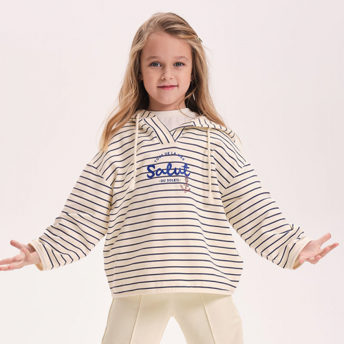 Состав: 96%хлопок 4%эластанОписание: Свитшот в полоску с принтом тельняшка, подходит для девочки подростка. Модный джемпер из высококачественного хлопкового футера можно носить круглый год весной, летом, осенью и зимой. Кофта с капюшоном подойдет для повседневной носки на занятия, в школу, в сад и на прогулку. Идеально для подарка на любой праздник.
