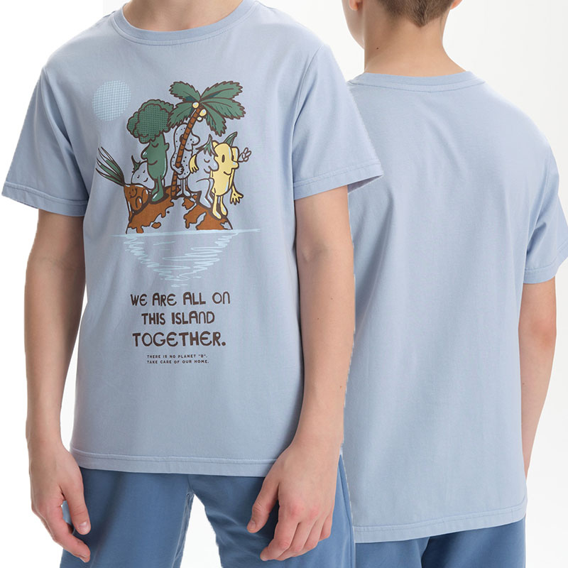 Состав: 100%хлопокОписание: Футболка для мальчика прямого кроя - это идеальный выбор для активного ребенка. Вырез горловины обработан эластичной тканью — она прекрасно держит форму, не растягивается, при этом ребёнку удобно надевать и снимать футболку. Футболка летняя с принтом и надписями. Перевод надписей "we are all on this island together" - мы все на этом острове, "there is no planet "B". take care of our home" - планеты "Б" нет. Заботься о нашем доме. Спортивная футболка подходит как для подростков так и для малышей в детский сад. Подходит для любого времени года.