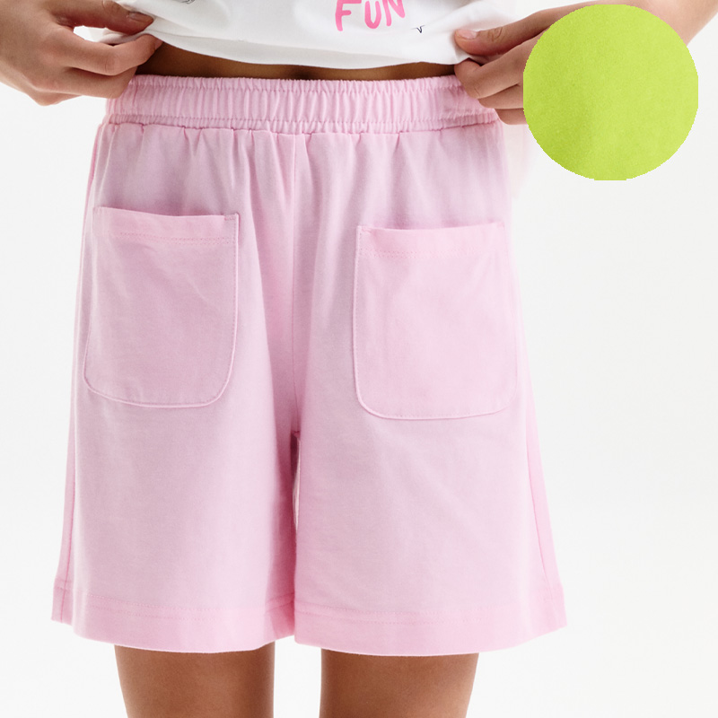Состав: 100%хлопокОписание: Шорты трикотажные для девочек из 100% хлопка. Длина уменьшена до середины бедра по сравнению с коллекцией Лето 25. Шорты с поясом на широком простроченном эластике и дополнительной шнуровкой обеспечивают идеальную посадку и регулировку по размеру.По переду два накладных кармана.