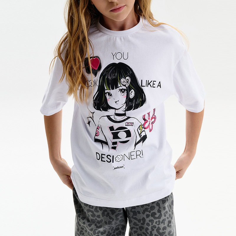 Состав: 100%хлопокОписание: Стильная и удобная белая футболка для девочки умеренного объема. Выполнена из мягкого трикотажа, хорошо тянется, дышит и комфортно сидит весь день. На груди — модный принт с яркими акцентами. Перевод: Ты выглядишь как дизайнер Футболка отлично сочетается с джинсами, юбками и шортами. Подойдёт для школы, прогулок, мероприятий и просто хорошего настроения. Не забывайте о выборе правильного размера. Используйте таблицу размеров на фотографии, чтобы выбрать подходящий вариант. Обратите внимание, что цвет товара на экране вашего устройства может отличаться от реального.