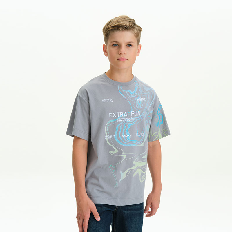 Состав: 100%хлопокОписание: Футболка для мальчика прямого кроя умеренного объема - это идеальный выбор для активного ребенка. Вырез горловины обработан эластичной тканью — она прекрасно держит форму, не растягивается, при этом ребёнку удобно надевать и снимать футболку. Футболка с фотопринтом и надписями. Перевод надписей: Сделай это в эпичном стиле вместе с Пеликан. ЭКСТРА ВЕСЕЛЬЕ. Будущее для экстраординарных детей. Почувствуй момент. Не переставай исследовать. Спортивная футболка подходит как для подростков так и для малышей в детский сад. Подходит для любого времени года.