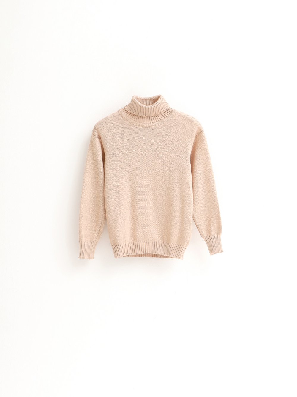 Свитер умеренного объема с высоким воротником с отворотом.