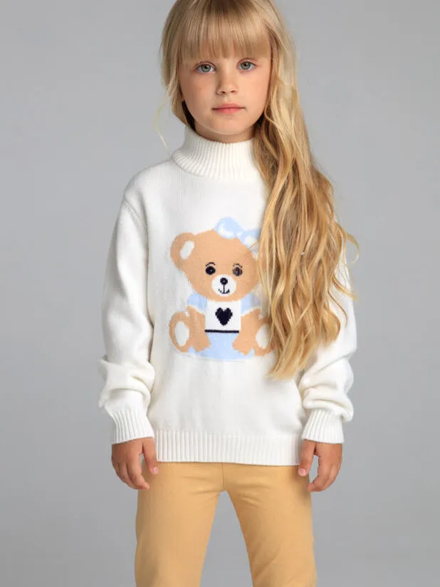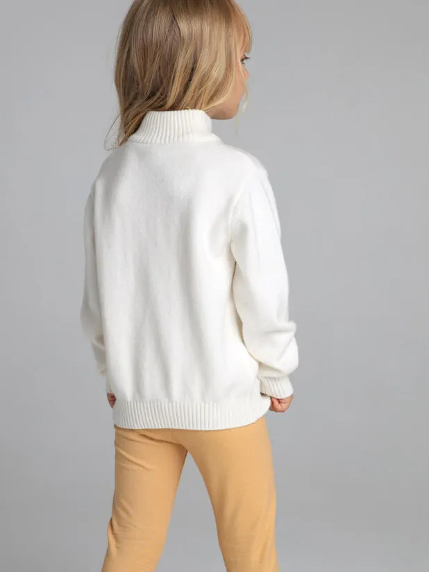Свитер из вязаного трикотажа. Приятный к телу материал, обладающий высокой гигроскопичностью - 50% вискоза. Воротник, манжеты и низ изделия в рубчик.