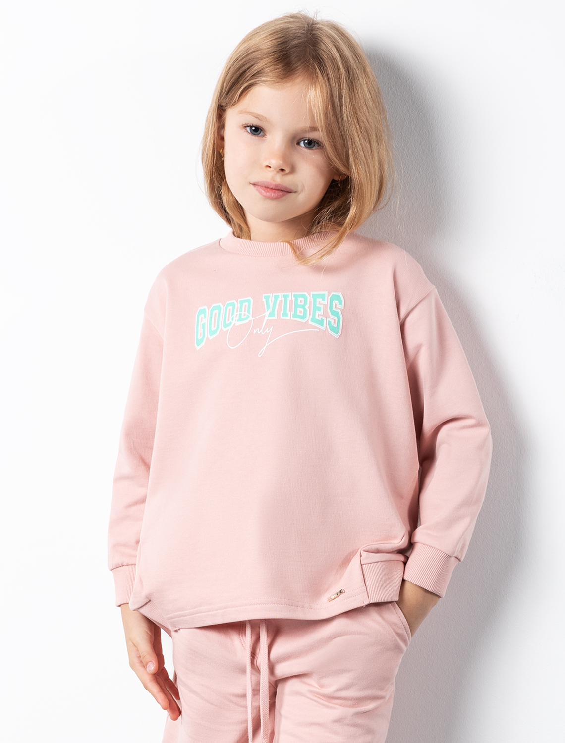Свитшот из премиального футера с принтом F49.406 пудровый