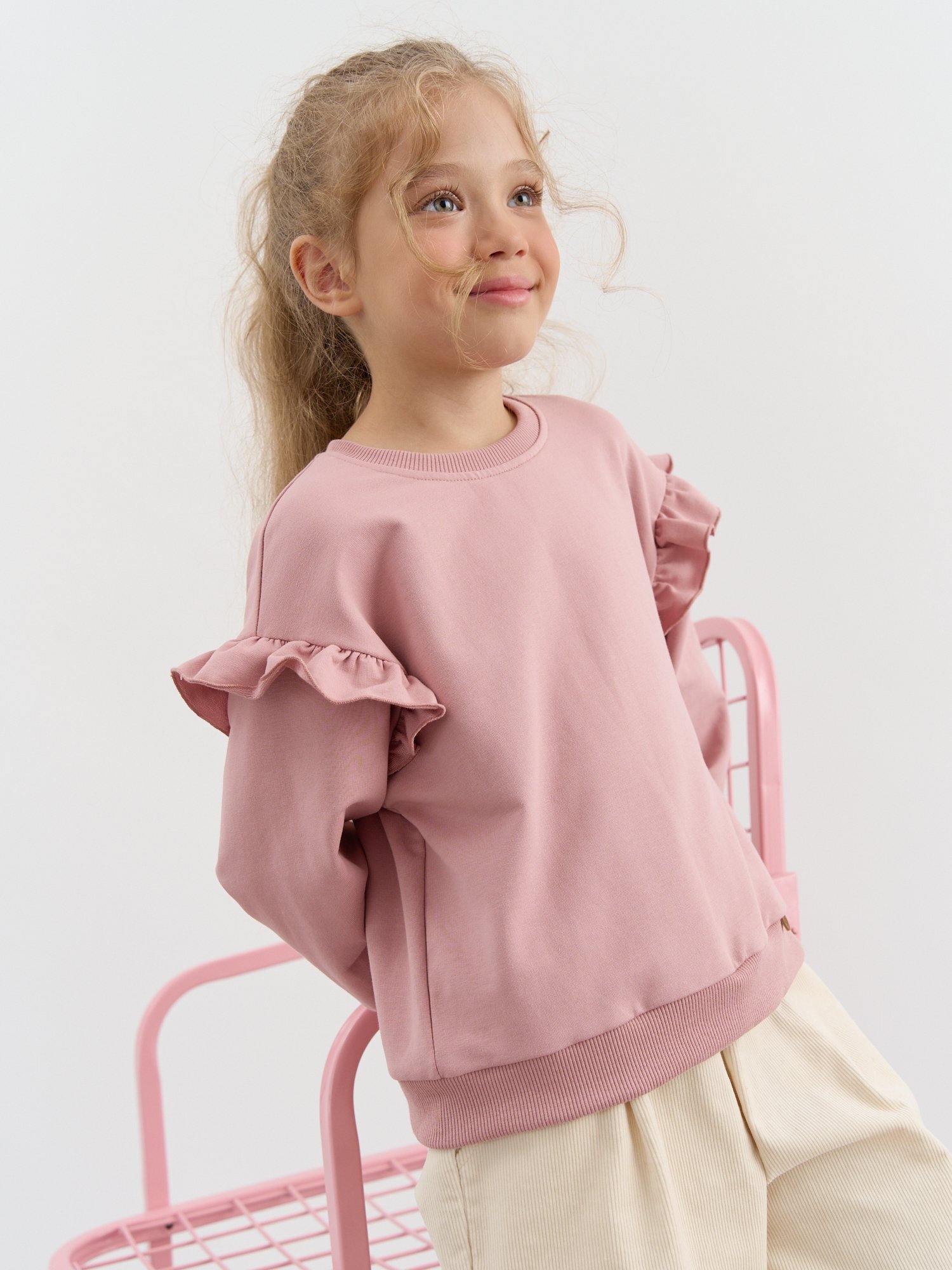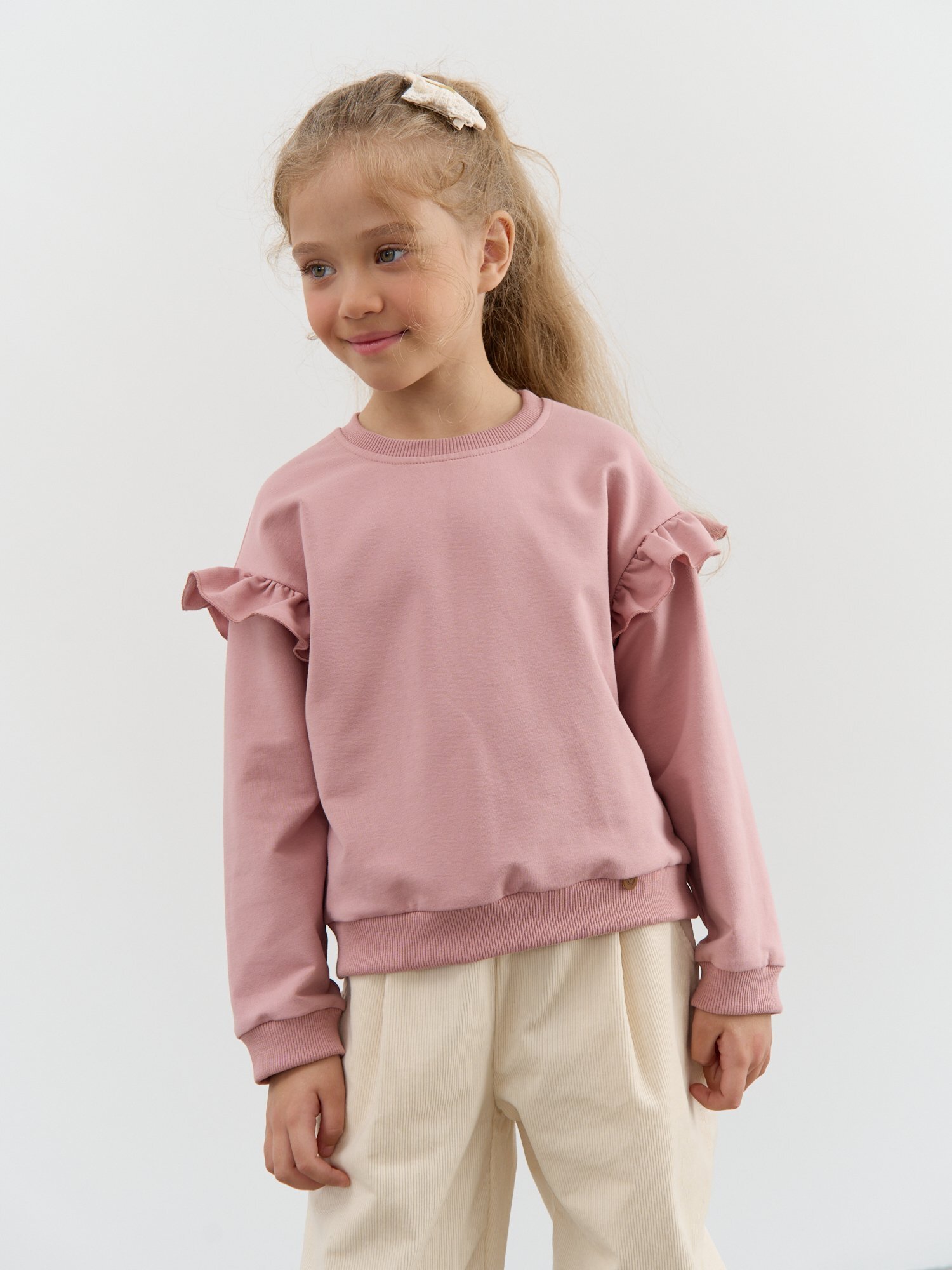 Нежный свитшот с крылышками для девочек из хлопкового трикотажа с мелкими петельками на изнанке.