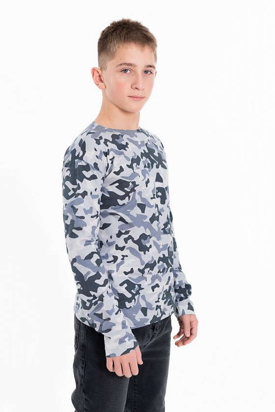 Тельняшка детская с длинным рукавом выполнена из х/б полотна (расцветка "камуфляж").