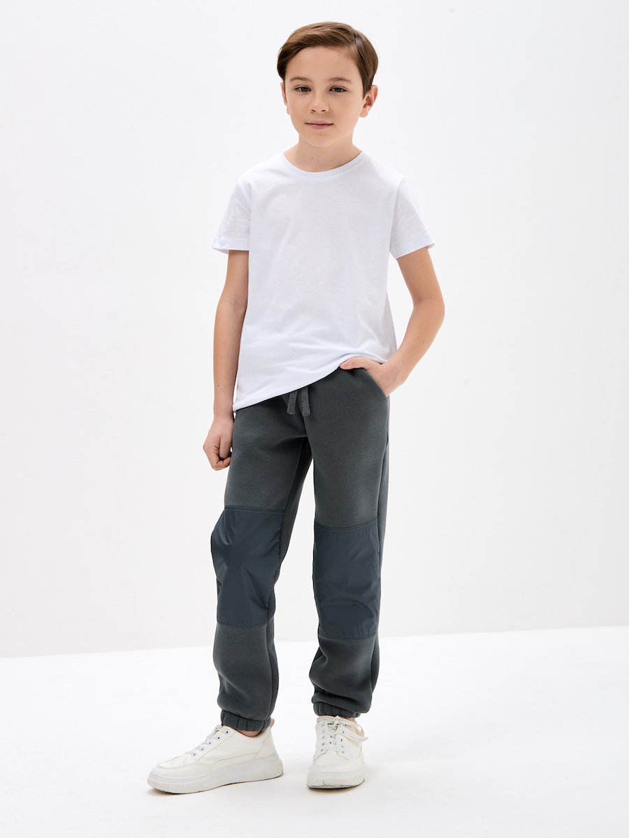 Брюки для детей с карманами  и нашивкой на коленях из плащевой ткани, выполнены из футера с начесом плотностью 320 г/м, состав 80% хлопок 20% ПЭ