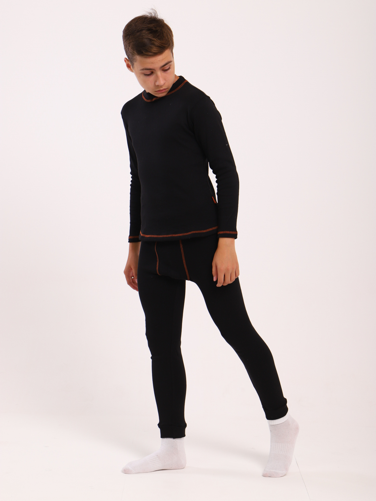 Комплект нательного детского белья для прохладной погоды обеспечит максимальный комфорт в повседневной жизни. Модель костюма нательного подросткового включает в себя лонгслив и кальсоны. Лонгслив детского теплого комплекта. Изделие облегает фигуру мальчика, так, что нательное белье становится незаметным под слоем верхней одежды. Лайкра в составе трикотажа из которого сшит комплект термобелья на подростка обеспечивает эластичность и удобство. Трикотаж с начесом внутри, это обеспечивает теплло.