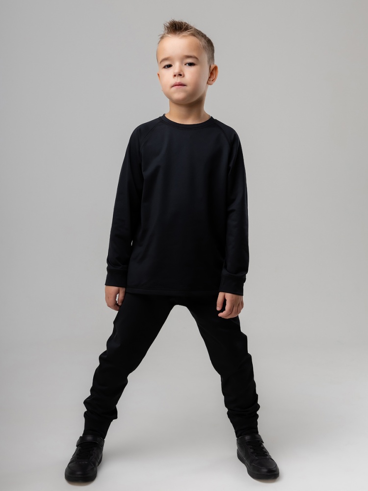 Материал термобифлекс Состав 100% полиэстер Термокостюм детский. Свитшот: рукава на манжетах, полуприлегающий покрой. Брюки, детали: прилегающий покрой, пояс - эластичная резинка, зауженный низ, без застежек, без карманов. Состав: термобифлекс 100% полиэстер