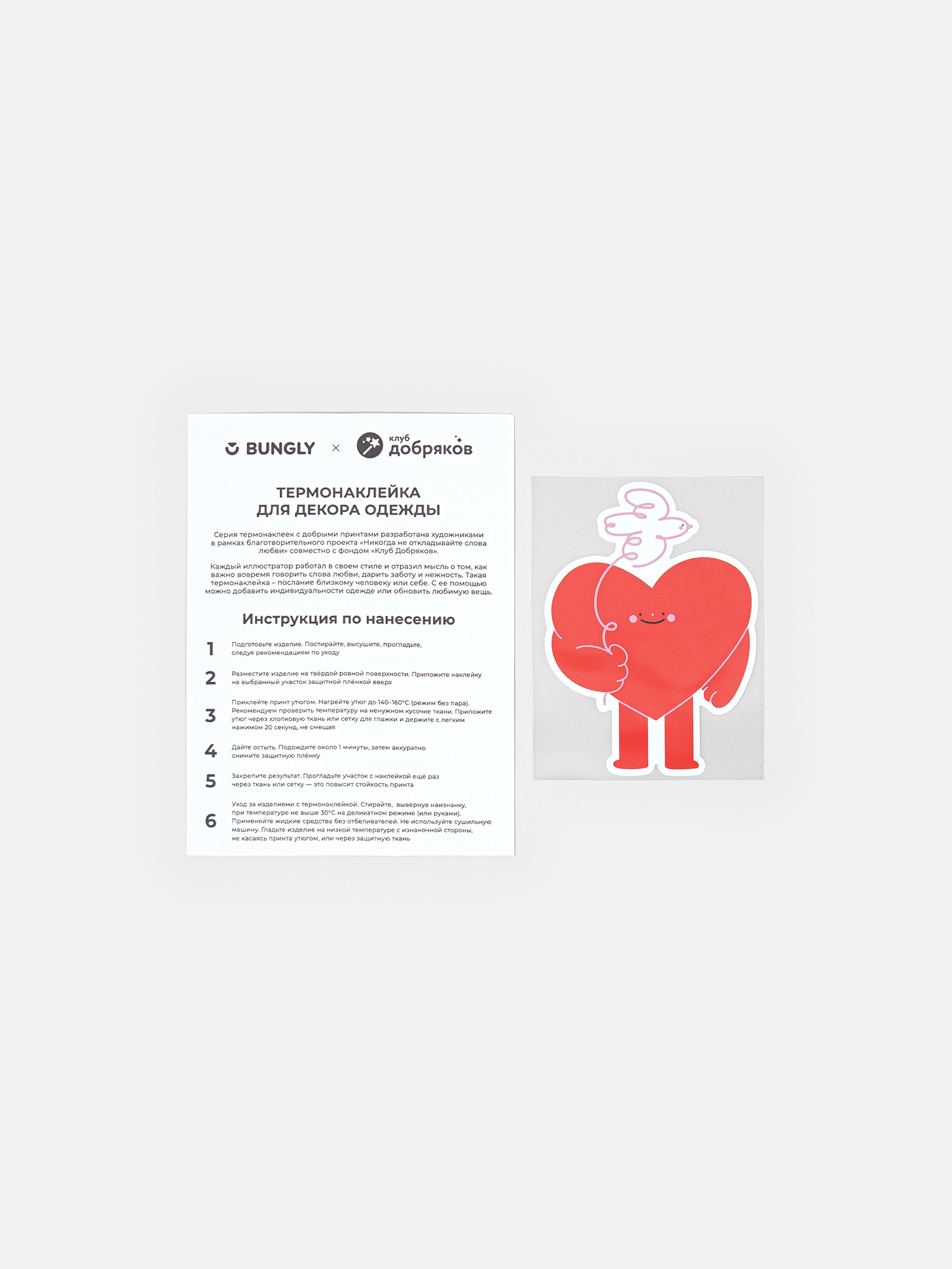 Эта особенная термонаклейка – не просто красивый принт, а маленький ритуал заботы: останавливающий миг, в котором мы замечаем простые проявления любви, дарим комфорт и внимание близкому человеку (или себе). Подарите её тому, кто вам дорог. С помощью такой наклейки, можно добавить индивидуальности одежде или обновить любимую вещь.