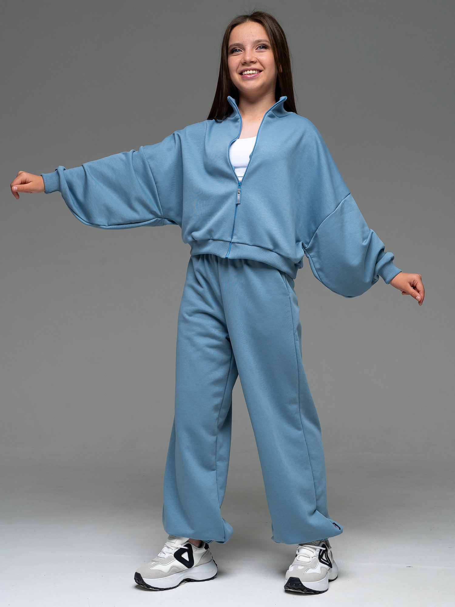 Толстовка на молнии из футера(3х нитка) Блюстоун цвета для девочки, с воротником-стойка. По низу рукавов манжеты.