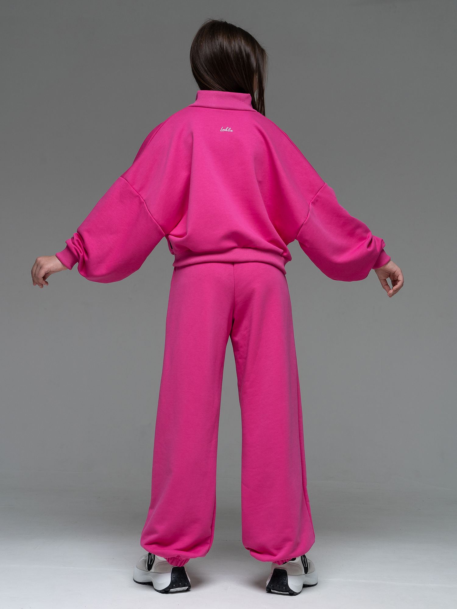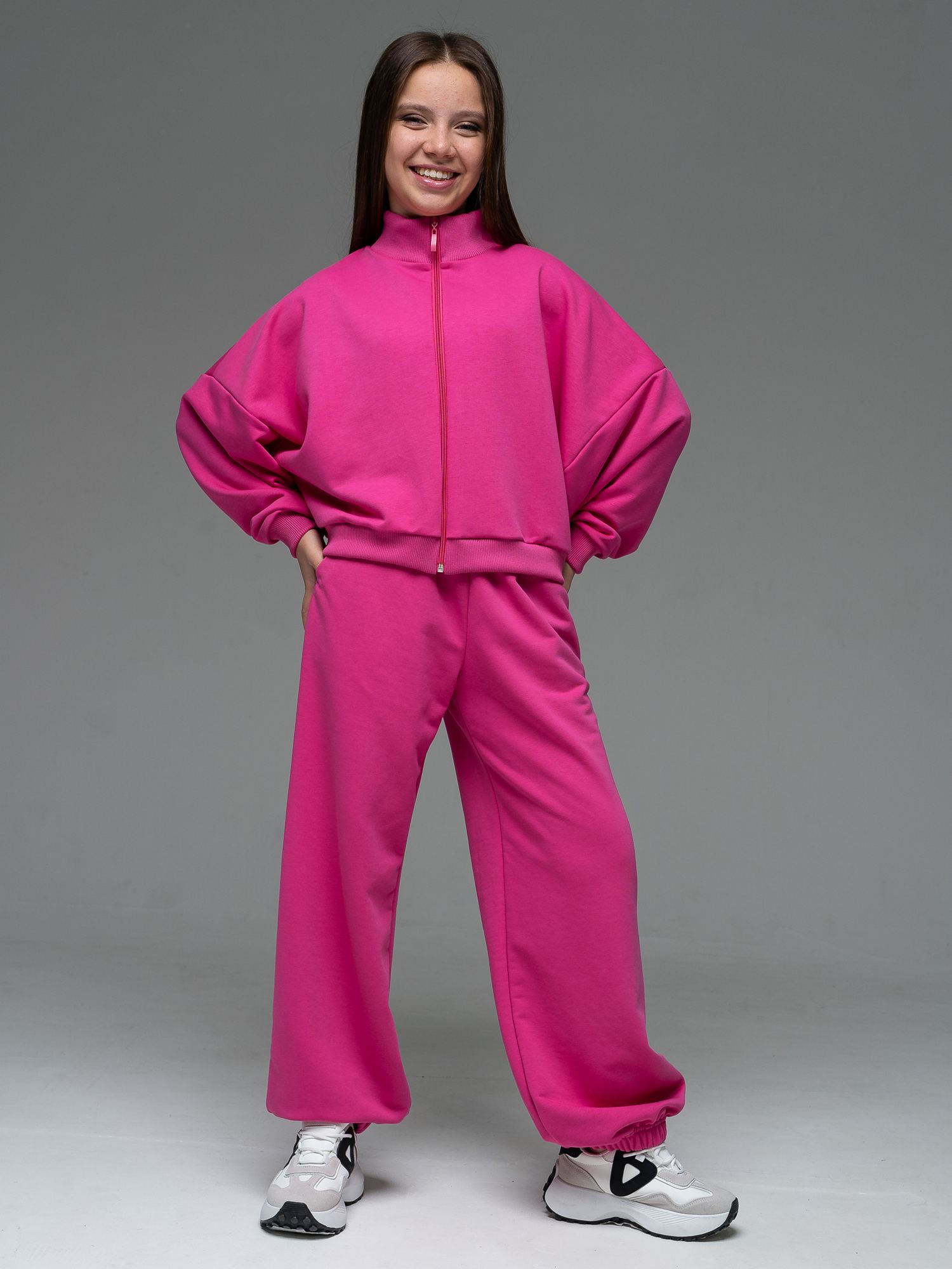 Толстовка на молнии из футера(3х нитка) сиреневого(фуксия) цвета для девочки, с воротником-стойка. По низу рукавов манжеты.