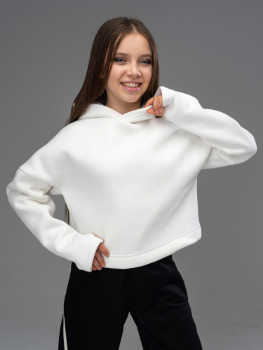 Укороченная толстовка худи из футера с начесом молочного цвета для девочки с длинными рукавами и капюшоном от российского производителя "Looklie" - базовый элемент гардероба. Oversize толстовка выполнена из трикотажа премиального качества - ПЕНЬЕ, с содержанием хлопка более 80%. Очень мягкая, теплая, уютная, приятная к телу, дышащая ткань. Трендовый худи кроп для девочки имеет удлиненные рукава с отверстием для пальца . Укороченная толстовка для девочки — тренд 2024, идеальный выбор для школы, физкультуры, для детского сада праздников и дома. Качество ткани, а также бережный уход (рекомендована бережная стирка при температуре до 30 градусов) обеспечивает длительный срок службы худи, материал не растягивается и не выцветает. Первое время допустимо незначительное отделение ворса - это особенность ткани с начесом, однако, после нескольких стирок, это проходит. Изделие выполнено из трикотажа премиального качества - ПЕНЬЕ, с содержанием хлопка более 80%