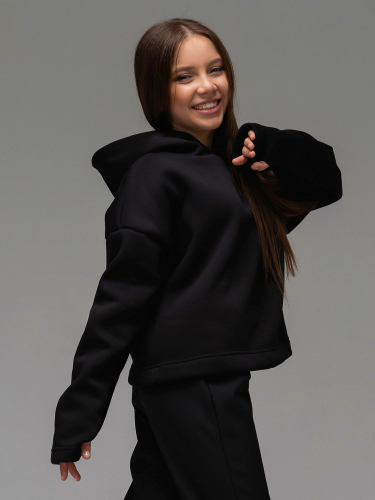 Укороченная толстовка худи из футера с начесом черного цвета для девочки с длинными рукавами и капюшоном от российского производителя "Looklie" - базовый элемент гардероба. Oversize толстовка выполнена из трикотажа премиального качества - ПЕНЬЕ, с содержанием хлопка более 80%. Очень мягкая, теплая, уютная, приятная к телу, дышащая ткань. Трендовый худи кроп для девочки имеет удлиненные рукава с отверстием для пальца . Укороченная толстовка для девочки — тренд 2024, идеальный выбор для школы, физкультуры, для детского сада праздников и дома. Качество ткани, а также бережный уход (рекомендована бережная стирка при температуре до 30 градусов) обеспечивает длительный срок службы худи, материал не растягивается и не выцветает. Первое время допустимо незначительное отделение ворса - это особенность ткани с начесом, однако, после нескольких стирок, это проходит. Изделие выполнено из трикотажа премиального качества - ПЕНЬЕ, с содержанием хлопка более 80%