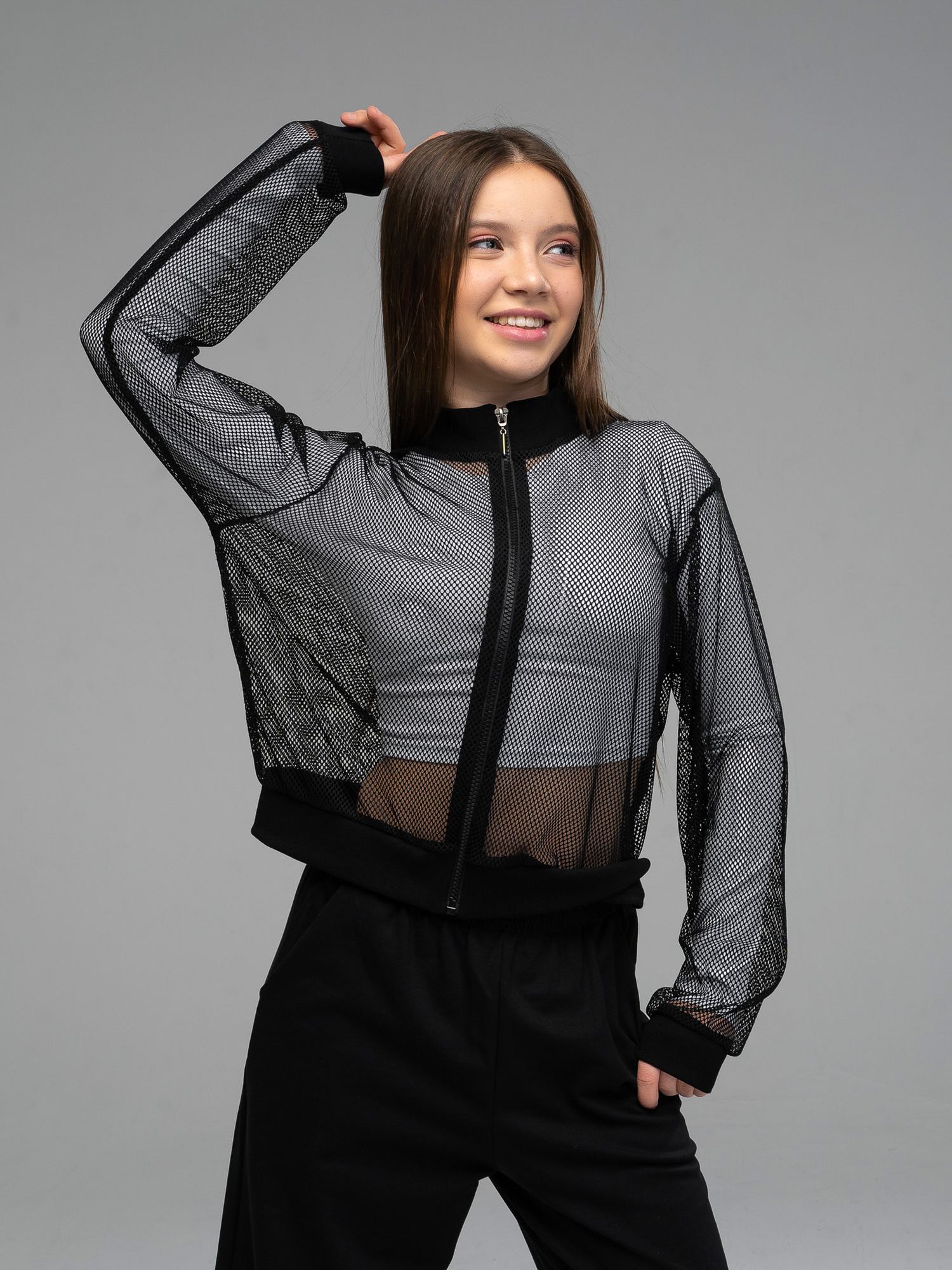 Кофта на молнии с воротником-стойкой, обеспечивающим удобство при ношении, длинными рукавами и мягкими манжетами, придающими образу завершенность. Благодаря свободному крою с легким эффектом оверсайз, кофта не стесняет движений, что делает её подходящей для занятий танцами, такими как хип-хоп и брейк-данс, спортивными мероприятиями, участием в конкурсах. Высококачественная сетчатая ткань гарантирует оптимальный уровень комфорта при различных видах активности. Топ сетка гармонично впишется в различные комплекты, помогая создавать неповторимые образы для любых случаев. Таких как вечеринка, фотосессия или значимый праздник."