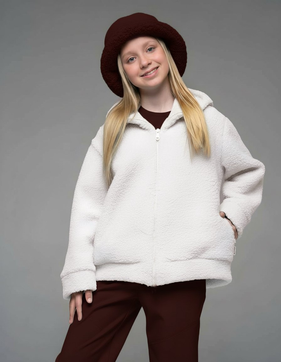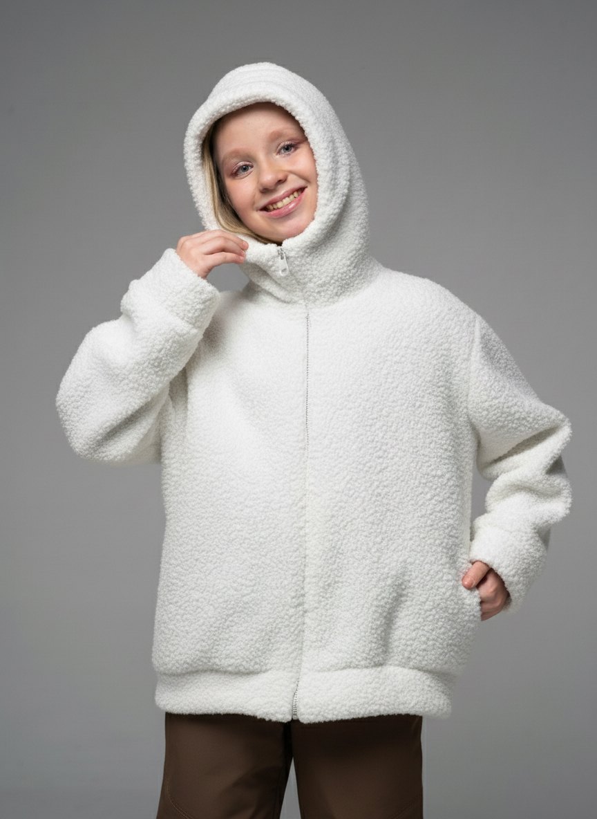 Плюшевая толстовка из шерпа молочного цвета для девочкис длинными рукавами и капюшоном от российского производителя "Looklie" - стильная уютная вещь гардероба для каждой девочки. Кофта тедди с боковыми карманами выполнена из шерпы премиального качества. Детская толстовка свободного силуэта очень мягкая, теплая и приятная к телу. Трендовая кофта для девочки имеет объмные рукава и двойной капюшон . Толстовка тедди для девочки — тренд 2025. Застежка молния позволяет легко надевать и снимать кофту, а также регулировать температуру внутри. Карманы добавляют удобство и функциональность в эту толстовку. Кофта детская плюшевая идеально подходит для прогулок, отдыха и повседневной носки. Качество ткани, а также бережный уход (рекомендована бережная стирка при температуре до 30 градусов) обеспечивает длительный срок службы кофты, материал не растягивается и не выцветает.