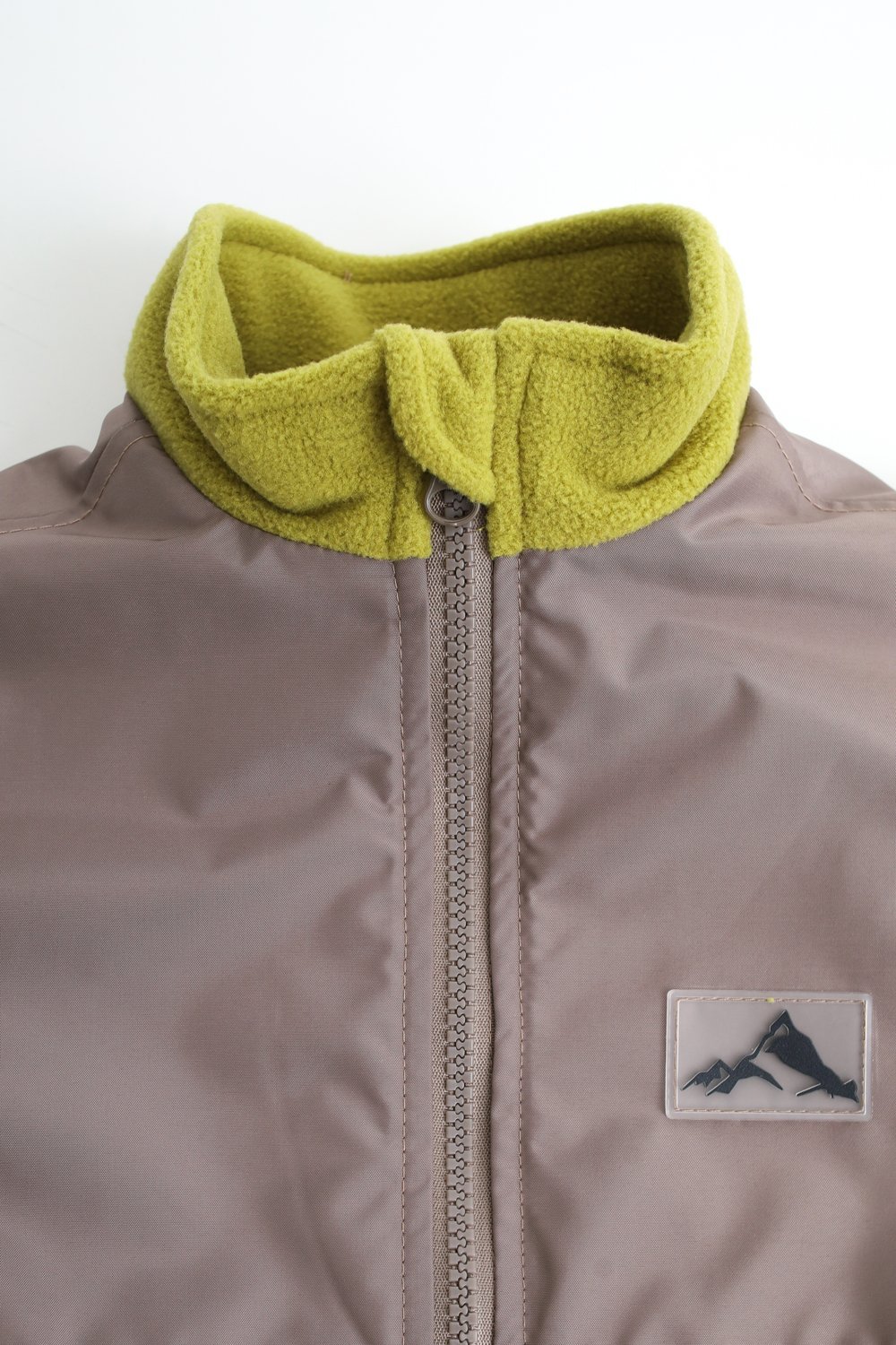 Толстовка на тракторной молнии с защитой подбородка от защемления. Кокетки и локти усилены плащевой тканью. По низу изделия кулиса со шляпной резиной, рукава с манжетами на резинке. Фирменная нашивка «Горы».
