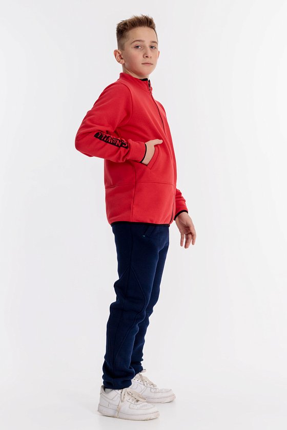 Толстовка из футер петли "воздушка". На рукавах и спереди на толстовке нанесены принты. Застёжка на молнию, по бокам размещены прорезные карманы. Внешние края воротника, манжет и низа изделия обработаны эластичной бейкой.