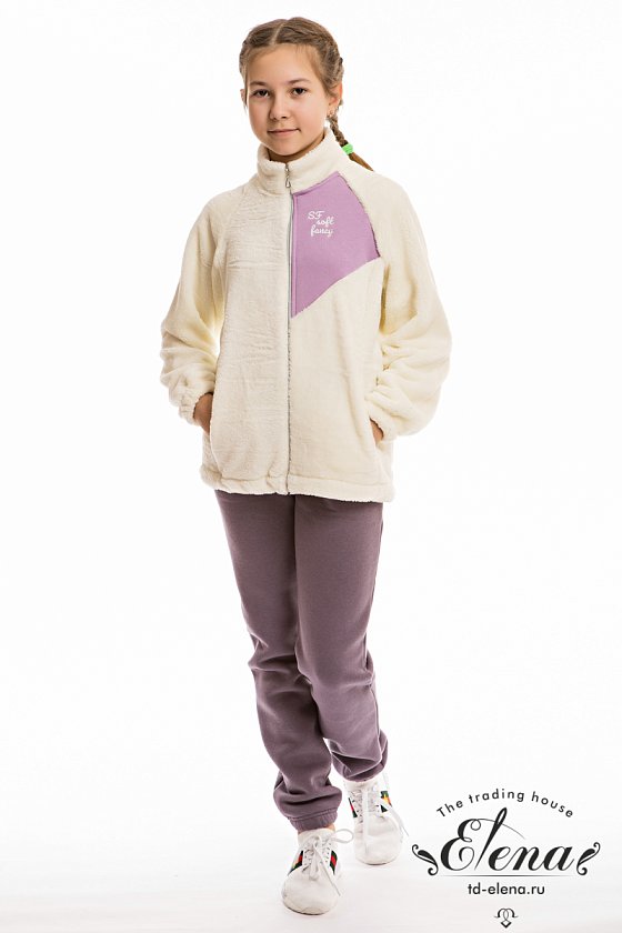 Толстовка из однотонного велсофта с отделочной кокеткой с вышивкой спереди. Рукава длинные, с резинкой по низу. Воротник-стойка, центральная застёжка на молнию. По бокам размещены карманы. Низ толстовки утягивается при помощи шнура-резинки.