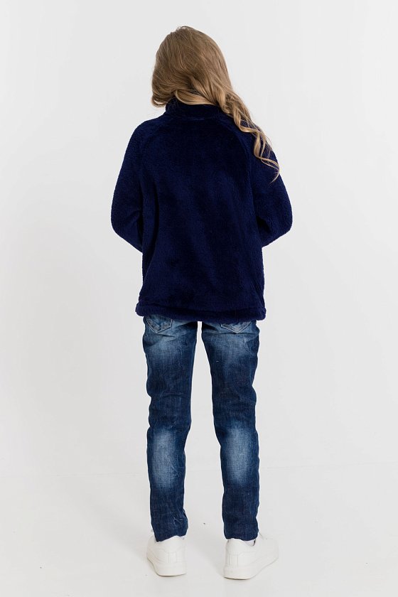Толстовка из однотонного велсофта с отделочной кокеткой с вышивкой спереди. Рукава длинные, с резинкой по низу. Воротник-стойка, центральная застёжка на молнию. По бокам размещены карманы. Низ толстовки утягивается при помощи шнура-резинки.