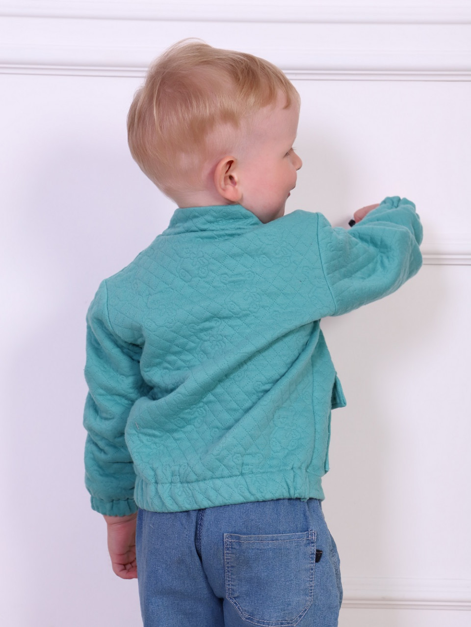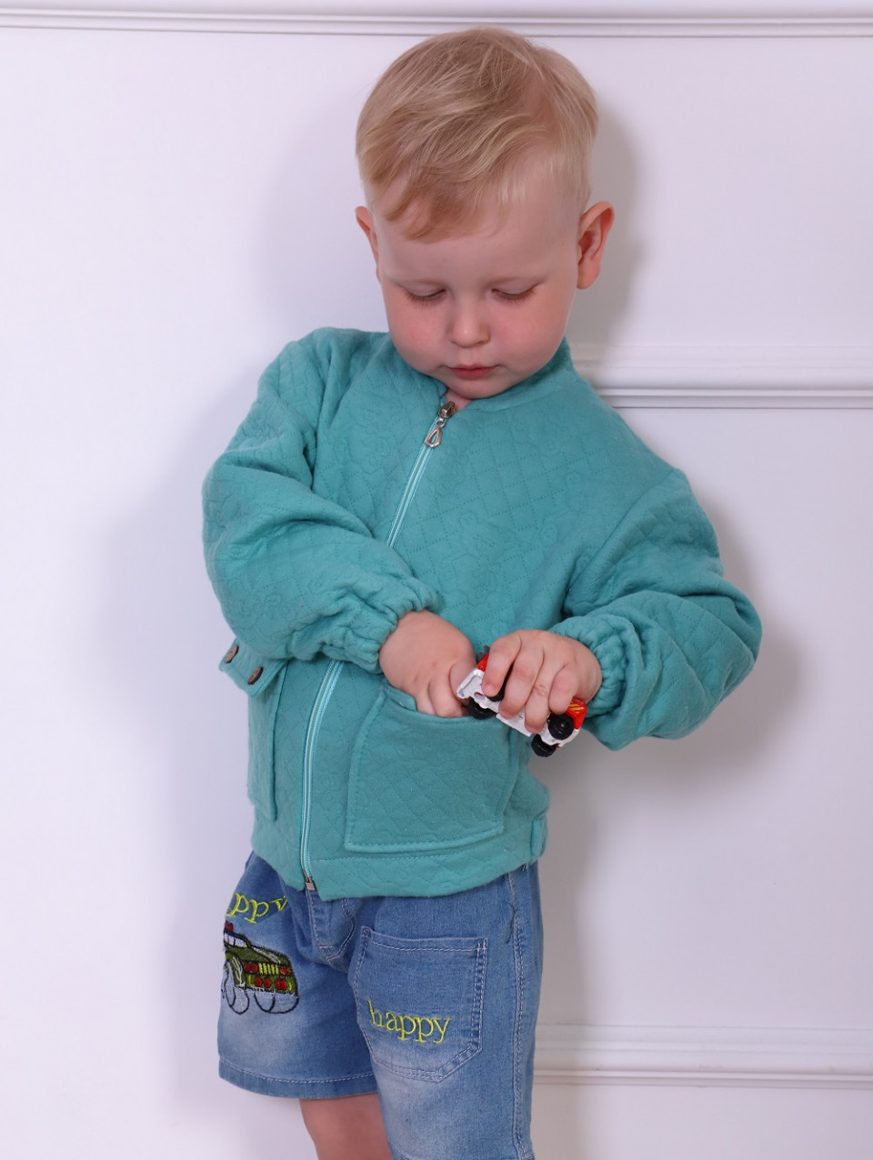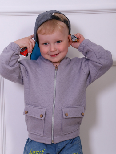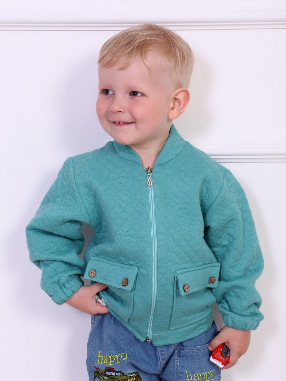 Классная толстовка для самых маленьких, подойдет как мальчикам, так и девочкам. Бомбер изготовлен из плотного и гипоаллергенного материала. Такая кофта в качестве подкладки под верхнюю одежду, будет дополнительно защищать от продуваний и сохранять тепло внутри. Толстовка для мальчика на молнии, без капюшона. Рукав втачной, на резинке. На полочке два удобных кармашка на пуговицах. Бомбер станет отличный вариантом для прогулок и отдыха в прохладную погоду.