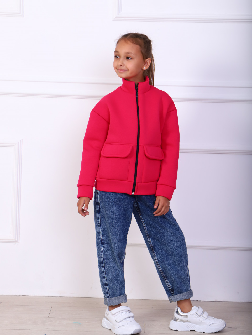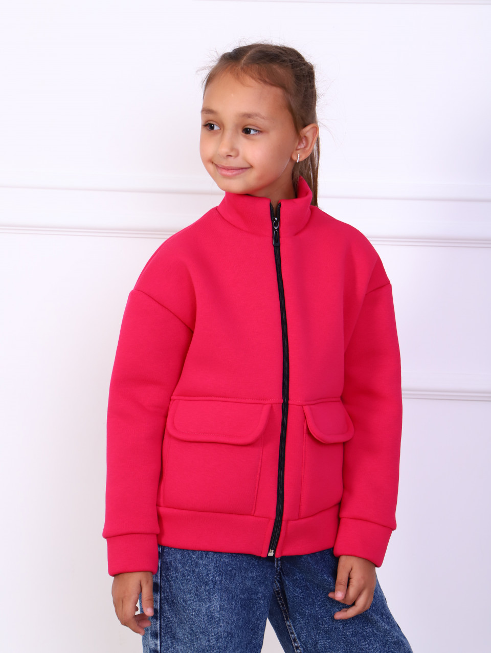 Детская удобная толстовка на флисе. Воротник-стойка, большие карманы, модель на молнии.