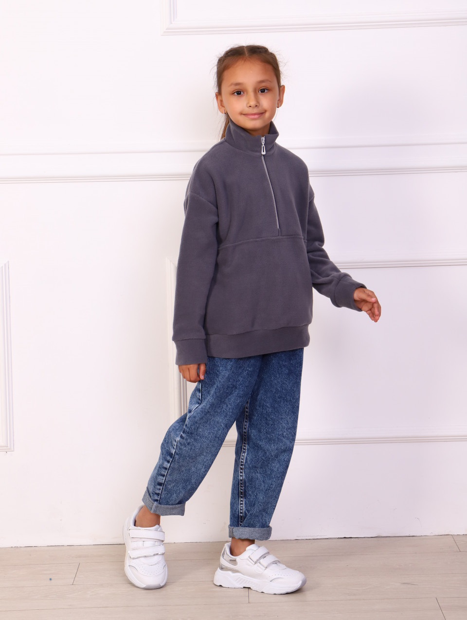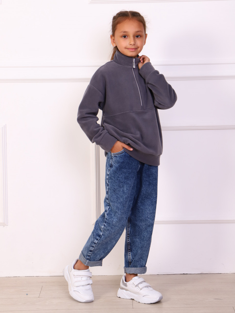 Детская спортивная толстовка на молнии из флиса - отличный выбор для детей, как для девочек, так и для мальчиков. Она является теплой, комфортной и практичной одеждой, подходящей для путешествий, прогулок и занятий спортом. Материал флис обладает отличными теплоизолирующими свойствами, поэтому вашим детям будет очень комфортно и тепло в этой толстовке как зимой, так и летом. Флисовая ткань также обеспечивает хорошую воздухопроницаемость, что позволяет коже дышать и предотвращает перегревание. Классический крой толстовки подходит для повседневного образа жизни и легко сочетается с другой одеждой. Она обеспечивает свободу движений и комфорт, позволяя вашим детям активно проводить время на свежем воздухе. Толстовка на молнии удобна в ношении и позволяет легко регулировать теплоизоляцию в зависимости от погоды. Она также имеет карманы, которые могут быть использованы для хранения мелочей или прогревания рук.