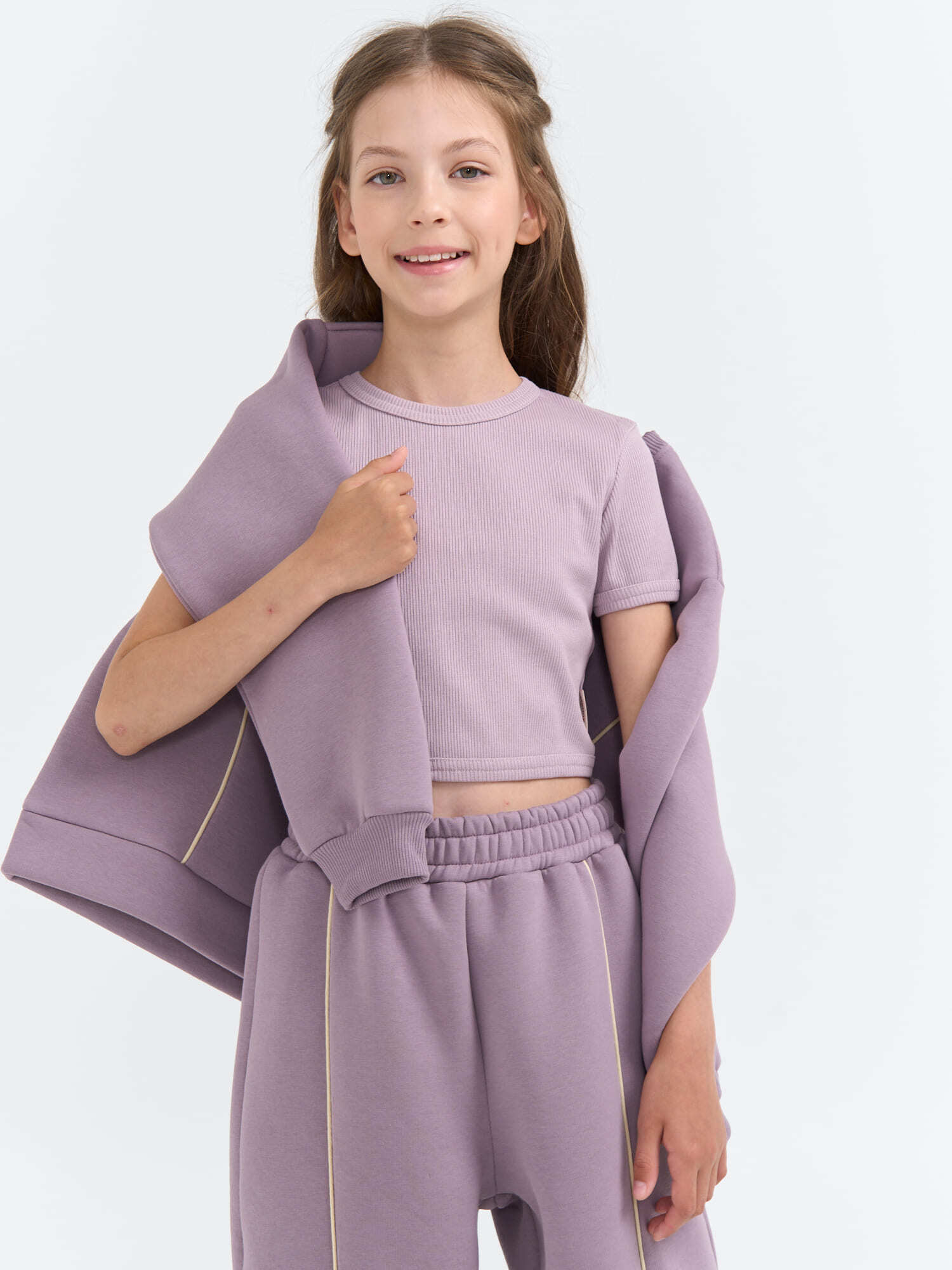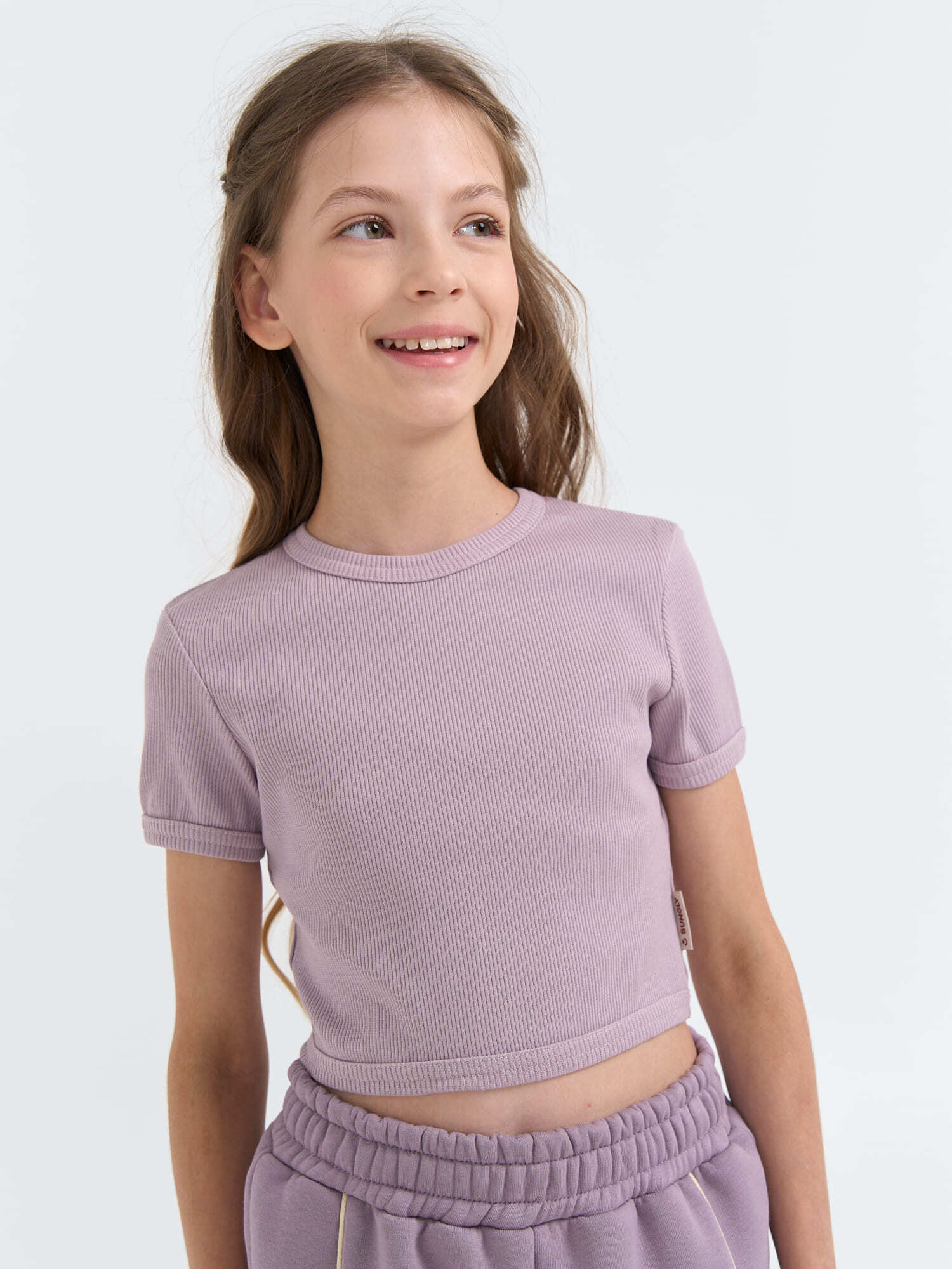 Укороченная облегающая футболка из кашкорсе для девочек.