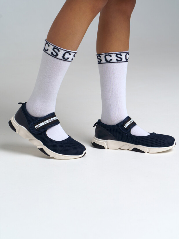 Модные темно-синие туфли с белой подошвой в школу для девочки от PlayToday — лёгкость, поддержка и надёжность на каждый школьный день!