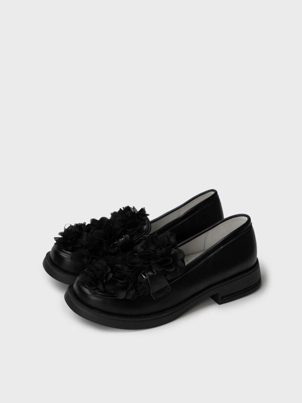Эти стильные подростковые лоферы с объёмными цветами для девочек — выбор для тех, кто хочет добавить немного разнообразия в школьный образ. Цветочный декор делает модель запоминающейся, а анатомическая кожаная стелька и удобная посадка гарантируют комфорт в течение всего дня.