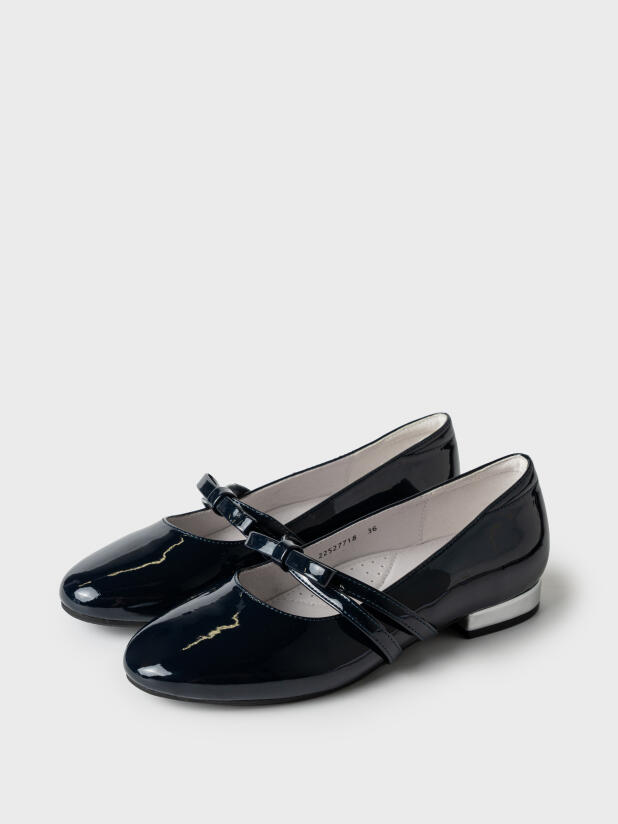 Совет по стилю: сочетайте стильные лаковые туфли для школы с сарафанами, юбками, платьями и брюками из школьной коллекции PlayToday. Для праздничного образа — добавьте белую блузку и аксессуары.