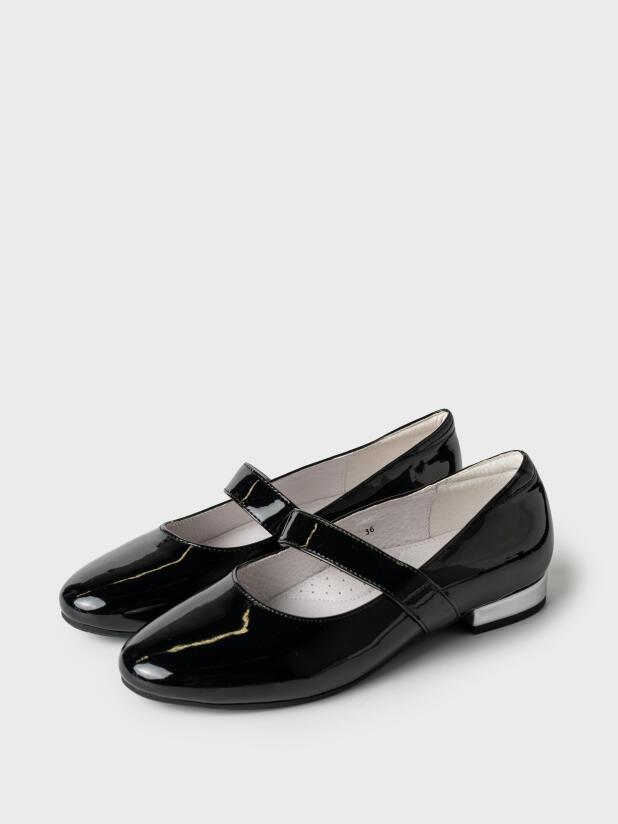 Эти школьные подростковые туфли для девочек сочетают в себе нарядный внешний вид и продуманный комфорт. Лаковая поверхность придаёт образу аккуратность и блеск, а ремешки с внутренней резинкой позволяют надевать обувь быстро и без усилий. Такая конструкция удобна для школьниц, которые постоянно в движении.