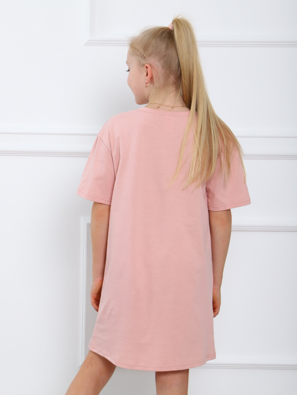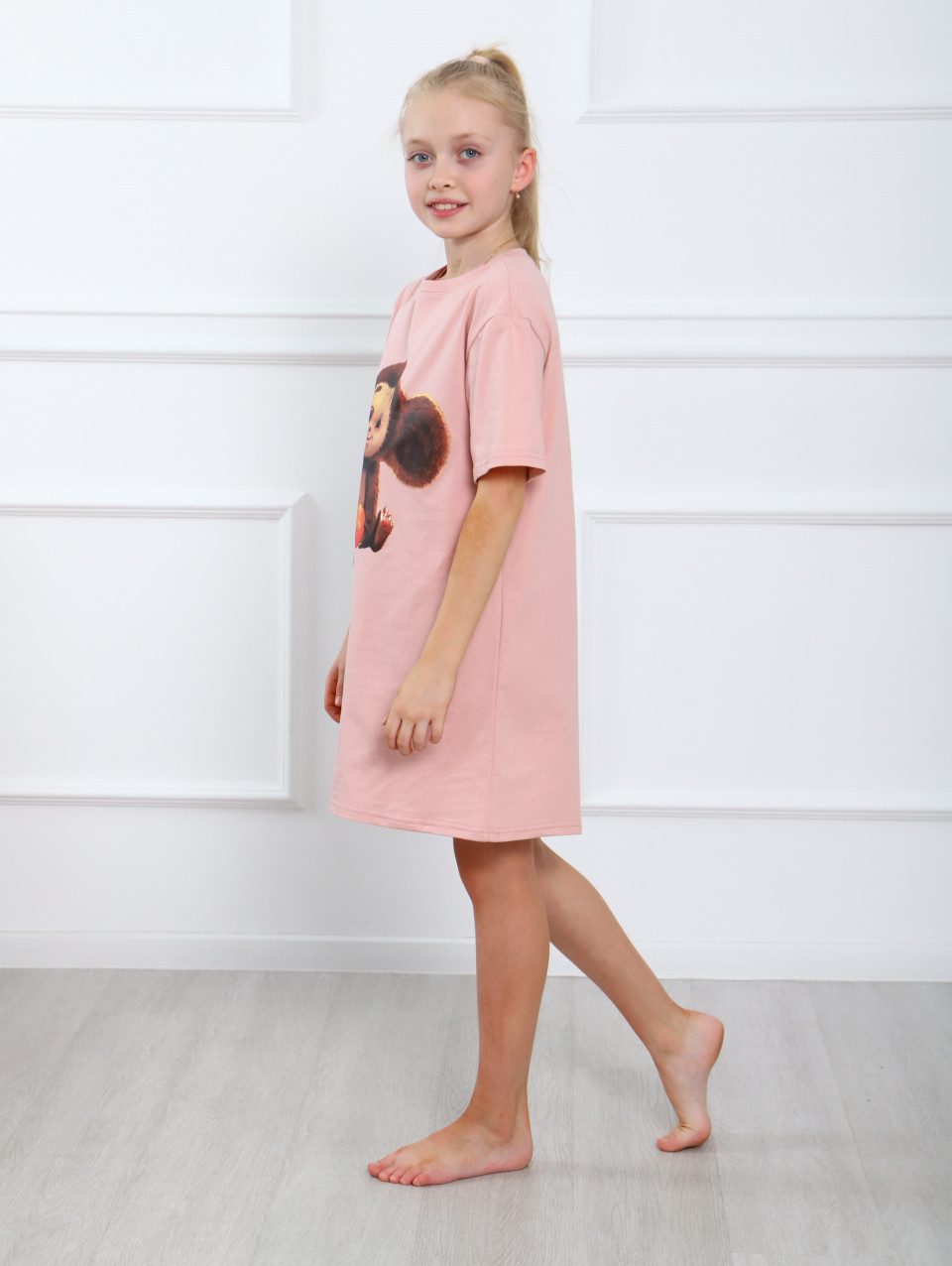 Туника для девочки с рисунком из качественного хлопкового полотна, свободного кроя, с короткими широкими рукавами и горловиной округлой формы. Можно использовать как ночную сорочку. Платье пошито из нежного трикотажного полотна высокого качества, из натурального 100% хлопка хб. Длинная ночная рубашка прекрасно подойдет для полных рук. Одежда не сковывает движения во время сна и активного отдыха. Сорочка ночная подойдет не только для сна, ее можно использовать как домашнее платье, одежда для дома, в детский сад, в подарок. Материал кулирка