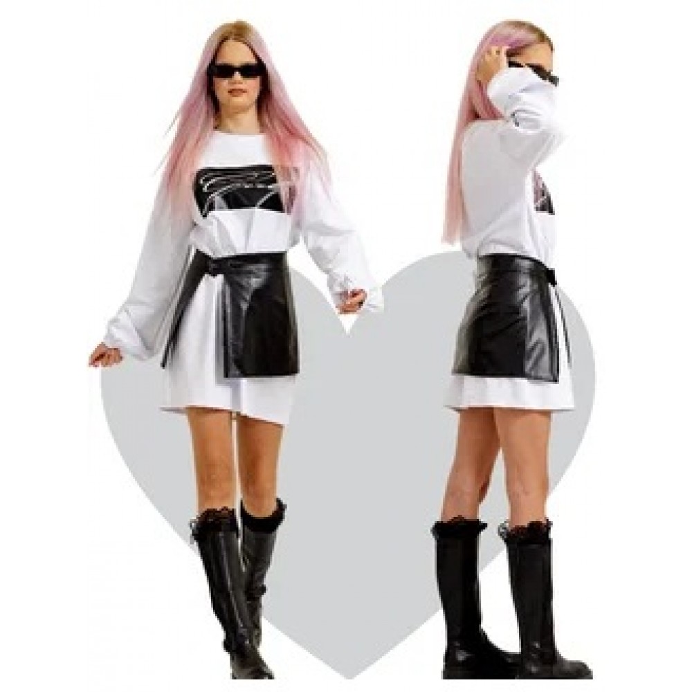 Туника платье c черной кожаной съемной баской