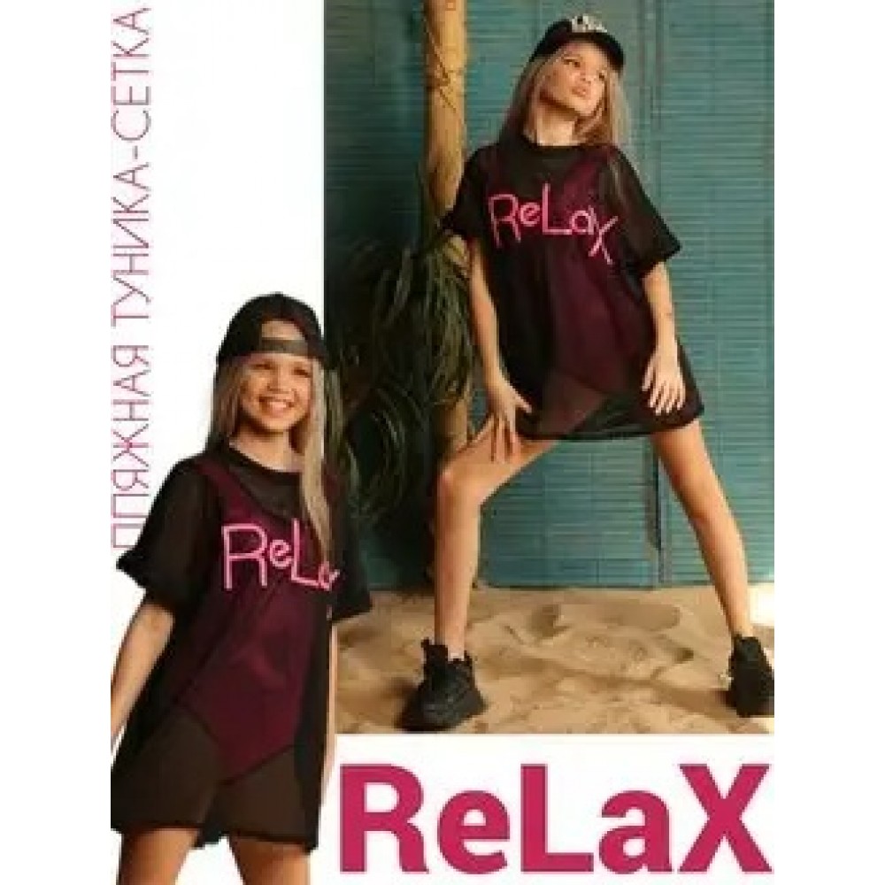 Туника-сетка для пляжа черная релакс