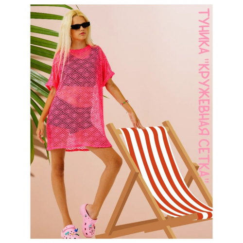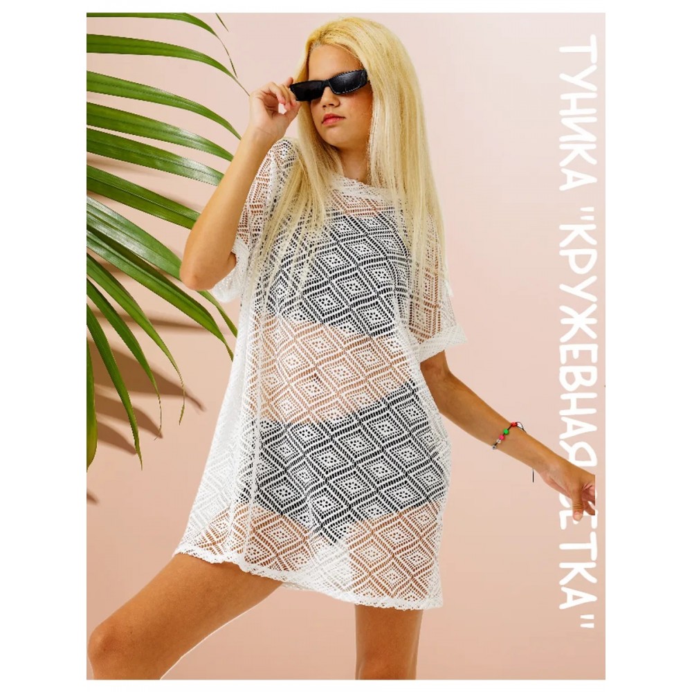 Пляжная туника-сетка для создания стильного образа и отличная защита от солнца. Сетка очень мягкая, приятная к телу, с прохладным эффектом. 100% полиэстер. Не мнется, прекрасный материал в уходе.