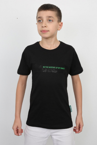 Стильная футболка для мальчика  Дополнена принтом. В размер. Пошив очень хороший.