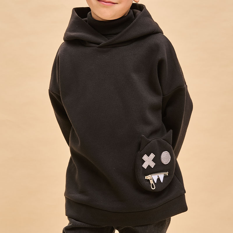 Состав: 66%хлопок 34%полиэстерОписание: Худи детское овресайз. Модель унисекс — одинаково классно смотрится и на мальчиках, и на девочках. Удлинённое худи актуального оверсайз-силуэта со спущенным плечом подарит ребёнку комфорт и не будет сковывать его движений. Худи с капюшоном двухшовным — это обеспечивает анатомически правильную форму и комфортную посадку по голове. Модель неприхотлива в уходе. Худи детское оверсайз выполнено из ткани с высоким содержанием хлопка — джемпер мягкий, воздухопроницаемый и гипоаллергенный. Полиэстер помогает сохранить цвет и первоначальный внешний вид надолго. Главная супермодная фишка модели — объёмный карман-игрушка в актуальном готическом стиле. На кармане молния-ротик, глазки и зубки из фетра. Изделие выполнено в универсальной расцветке, его легко комбинировать с любыми брюками, джинсами. Отличное черное худи для детей дошкольного и младшего школьного возраста, а также подростков. Джемпер идеален для детского сада, прогулок, отдыха, дома. Худи оверсайз с капюшоном подходят для круглогодичной носки. Помните о правильном уходе за изделием: рекомендуется стирать при температуре не выше 30 °C, без предварительного замачивания, с изнанки. Это поможет сохранить качество и цвет худи на длительное время. Не забывайте о выборе правильного размера. Используйте таблицу размеров на фотографии, чтобы выбрать подходящий вариант для вашего ребенка. Обратите внимание, что цвет товара на экране вашего устройства может отличаться от реального.